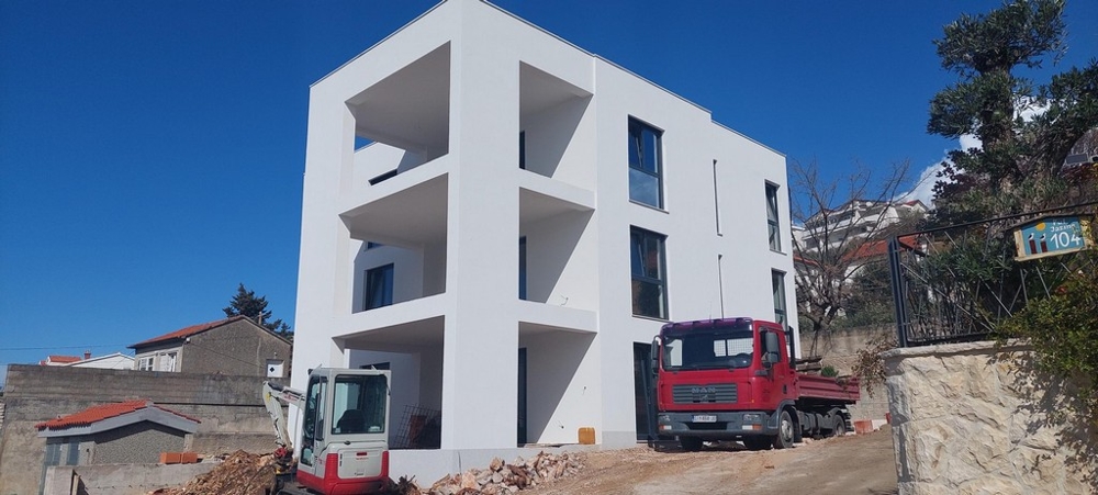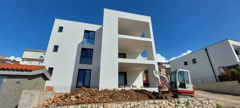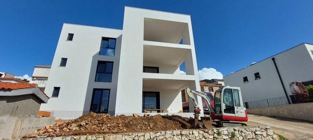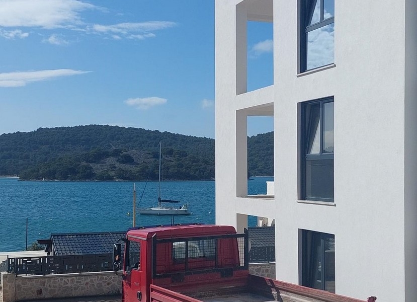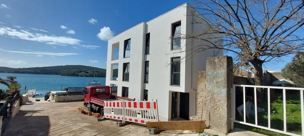 Bei diesem Angebot handelt es sich um eine moderne Neubauwohnung im Erdgeschoss mit Swimmingpool in attraktiver Lage nahe dem Meer in Tisno, Dalmatien.