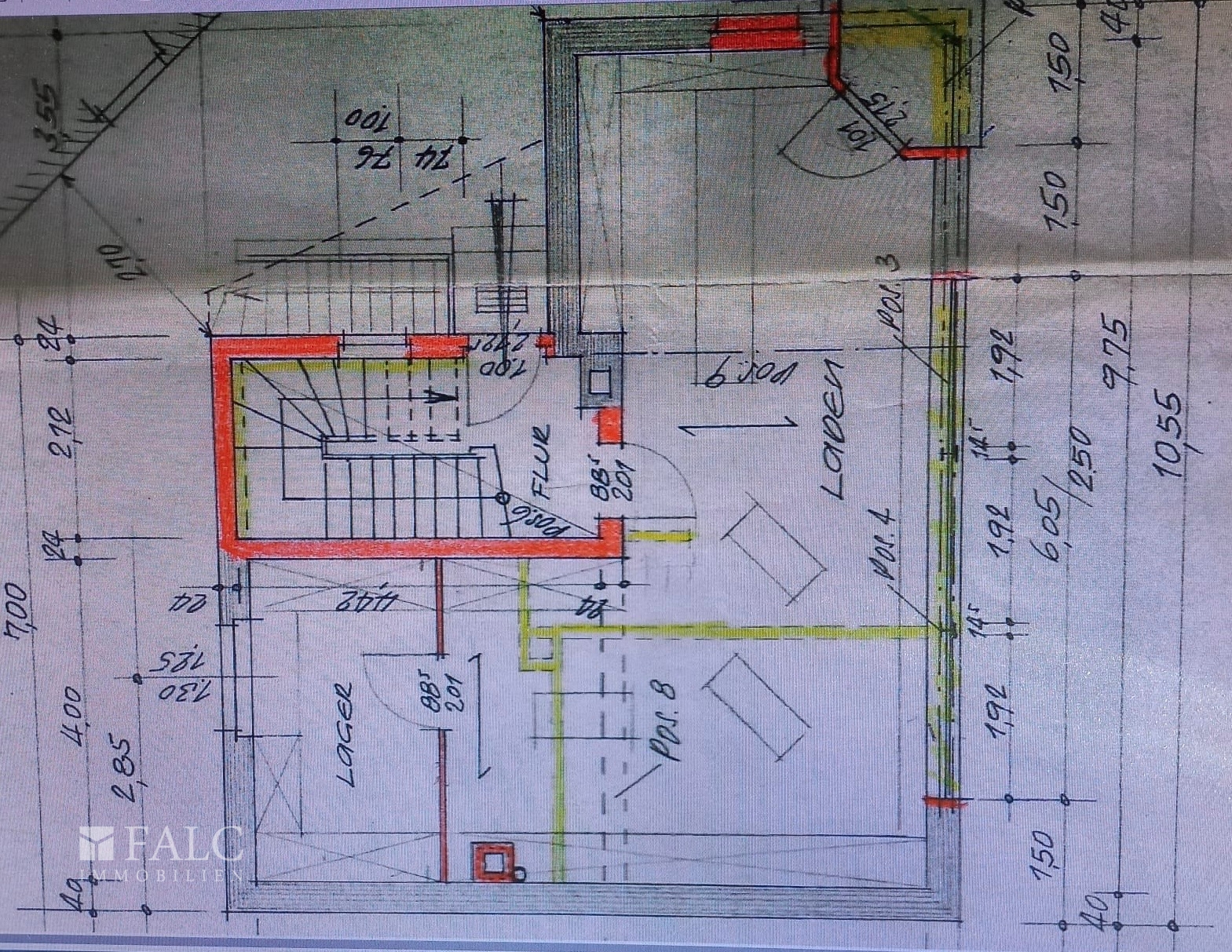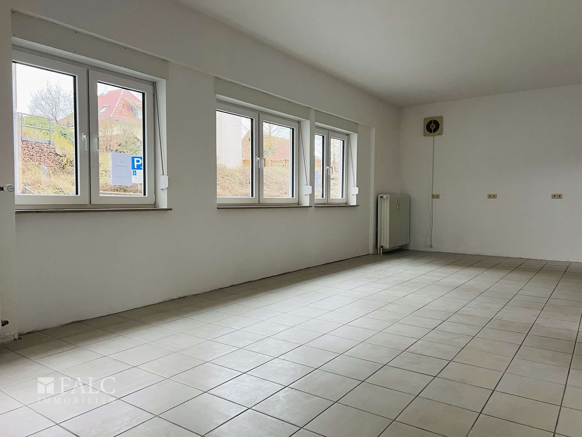 Die Fläche verfügt über einen großzügigen, offen gestalteten Hauptbereich mit guter Belichtung durch mehrere Fenster zur Straßenseite. Ergänzt wird dieser durch separate Nebenräume, eine ehemalige Küchen- bzw. Vorbereitungsfläche, ein WC sowie weitere Funktions-und Abstellflächen. Der Grundriss erlaubt sowohl offene Konzepte als auch eine strukturierte Raumaufteilung, je nach Bedarf des zukünftigen Nutzers.