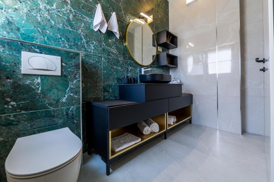 Zur Ausstattung gehören vier Schlafzimmer, jeweils mit eigenem Badezimmer, ein weiteres Bad, ein Wohnbereich, eine Küche mit Esszone sowie ein Wellnessbereich mit Swimmingpool. Großzügige Terrassen ermöglichen einen weitreichenden Blick auf die Opatija Riviera und die vorgelagerten Inseln.
