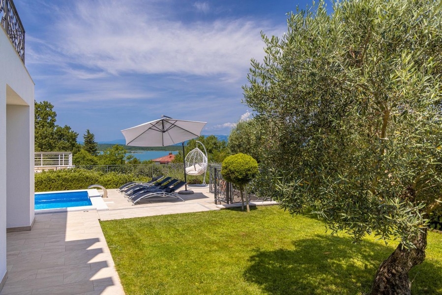 Dieses Angebot umfasst eine moderne Premiumvilla mit exklusiver Ausstattung, beheizbarem Pool und attraktivem Blick auf das Meer in Soline auf der Insel Krk, die über eine Brücke mit dem Festland verbunden ist.