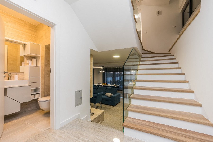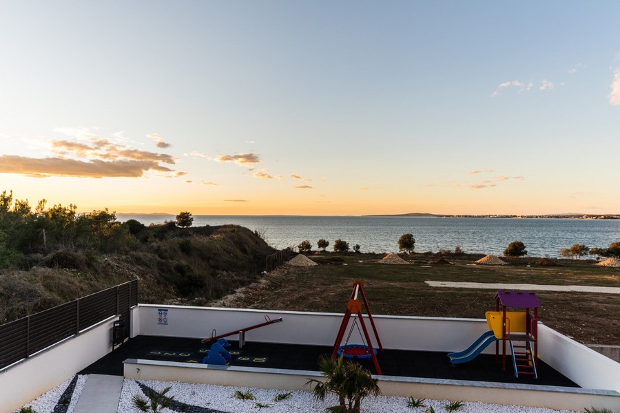 Zum Verkauf steht diese moderne Luxusvilla mit Swimmingpool in attraktiver Lage nahe dem Meeresufer in Zaton, Region Nin (Festland).