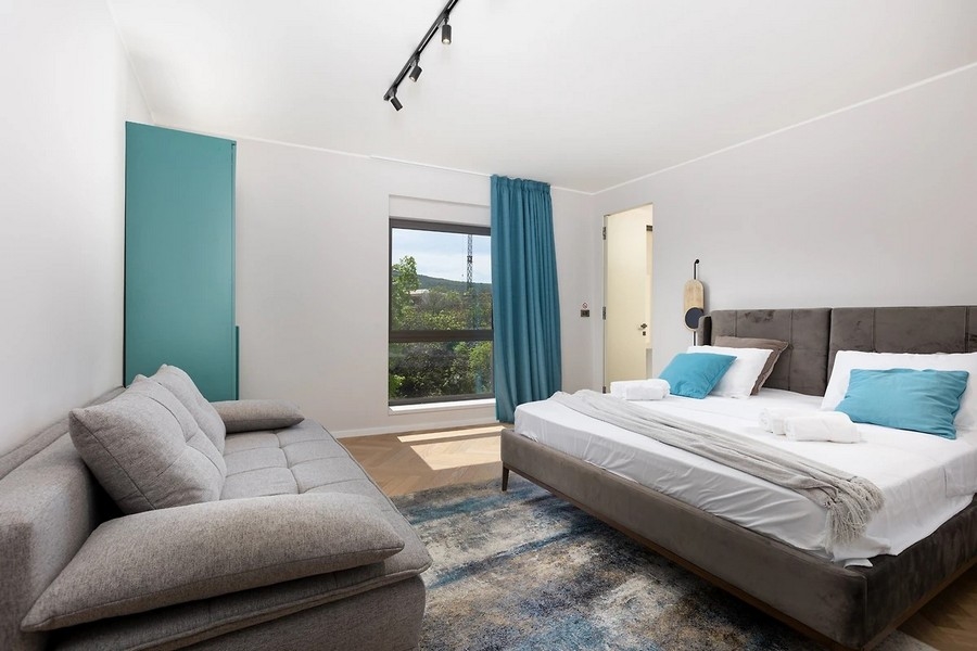 Obere Etage: drei Schlafzimmer mit je einem privaten Bad (Master-Schlafzimmer mit begehbarem Kleiderschrank und Sauna)