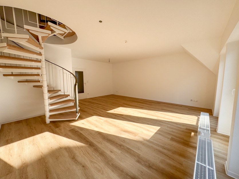 Diese charmante Maisonette-Wohnung bietet auf zwei Etagen viel Platz und eine clevere Raumaufteilung, die Wohn- und Schlafbereiche geschickt voneinander trennt.