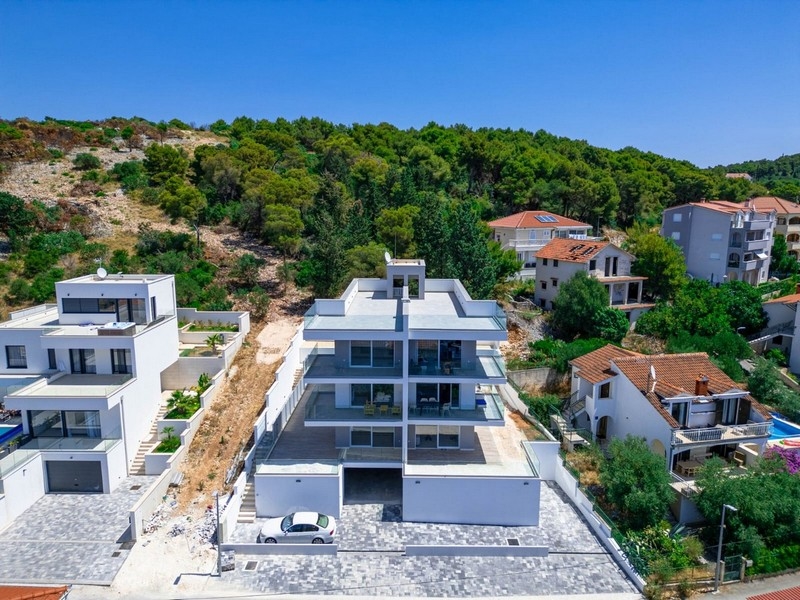 Diese Appartements liegen in einem modernen Neubau, dessen Bau Ende 2023 begann und dessen Fertigstellung Anfang 2025 erwartet wird. Das Projekt umfasst 6 Wohnungen mit Terrassen und Blick auf Bucht, Meer und Insel Ciovo. Die Lage bietet eine herrliche Aussicht, gute Anbindung, ruhige Atmosphäre und Nähe zum Meer.