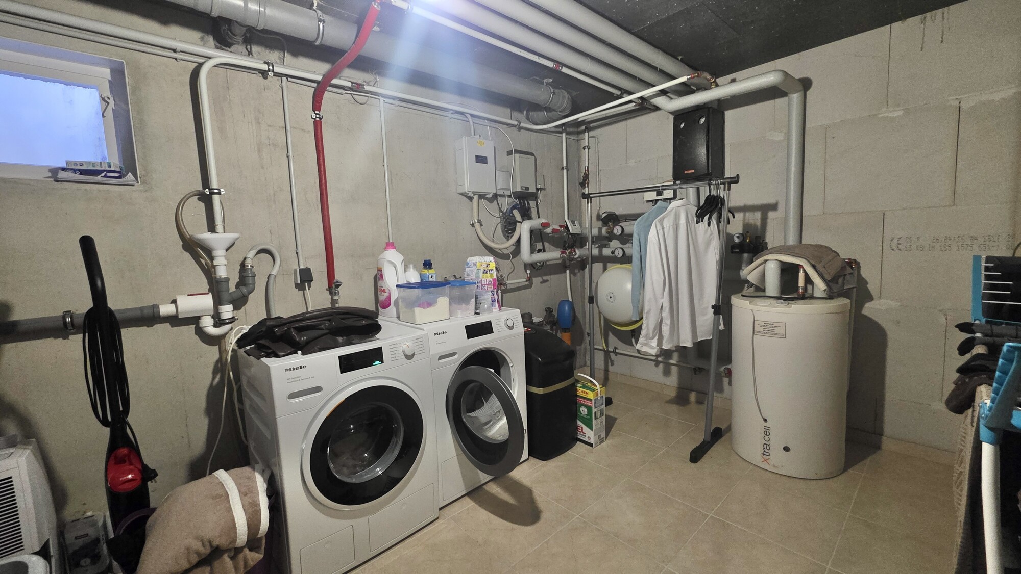Das Haus ist voll unterkellert mit Kellerräumen und Waschraum mit Anschlüssen für Waschmaschine/Trockner sowie der Haustechnik mit Fernwärmeanschluss. Platz für Ihr Fahrzeug finden Sie auf Ihrem Stellplatz neben dem Haus.