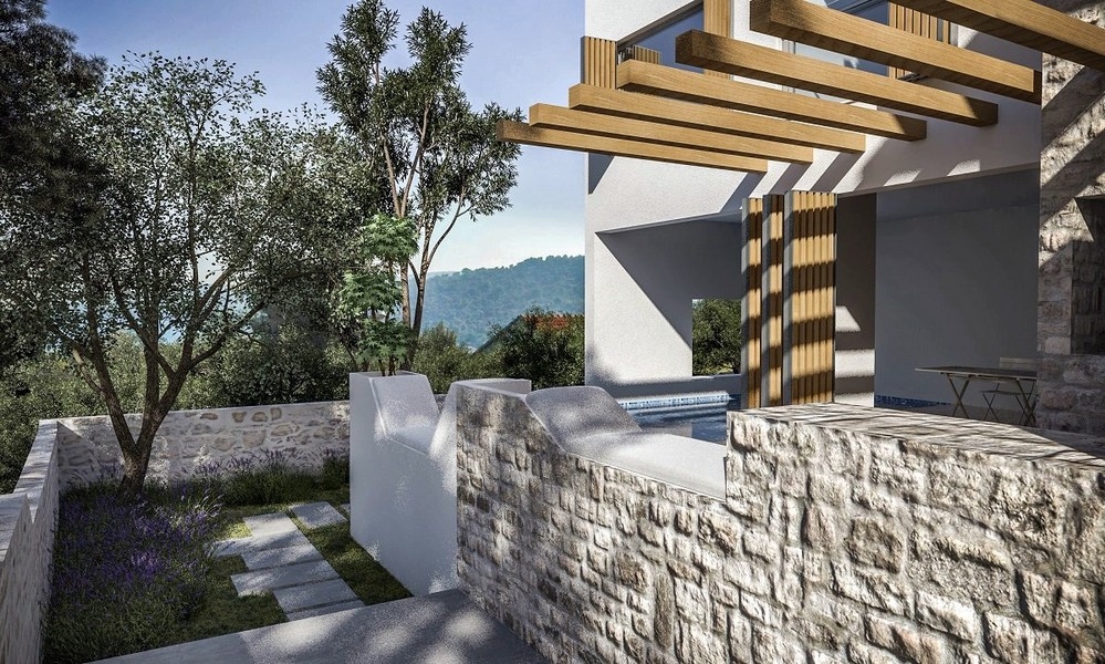 Moderne Steinvilla mit schönem Meerblick in Jezera
