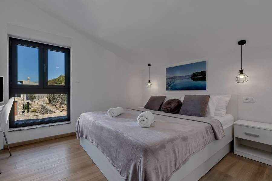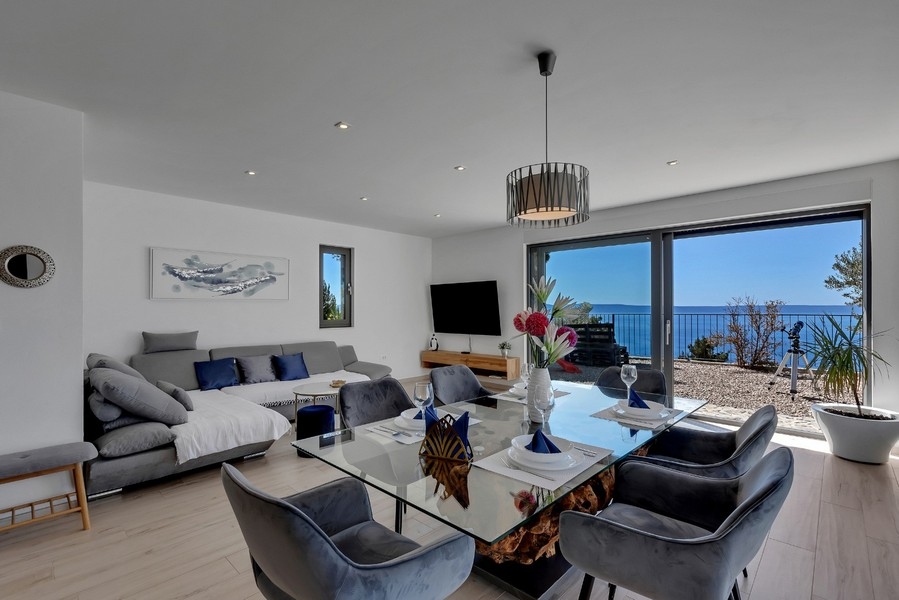 Das Anwesen verfügt über einen Pool und eröffnet einen herrlichen Ausblick auf die Adriaküste und das offene Meer.