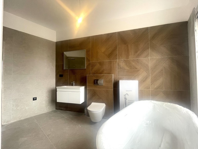 Ein weiteres Highlight ist die 35 m² große Dachterrasse mit Panoramablick auf das Meer, die über eine Außentreppe zugänglich ist. Die Ausstattung umfasst elektrische Fußbodenheizung in allen Räumen sowie eine moderne Multisplit-Klimaanlage mit Heiz- und Kühlfunktion. Zum Haus gehören zwei Stellplätze im umzäunten Außenbereich.