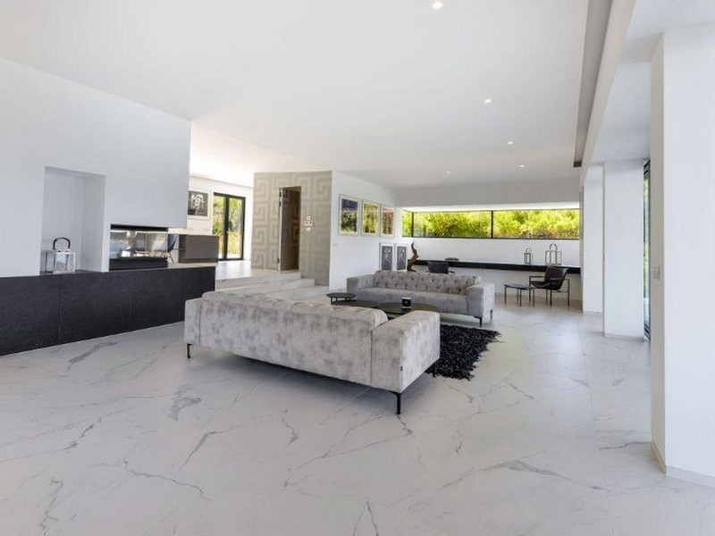 Die Villa wurde auf einem etwa 1333 m² großen Grundstück unmittelbar am Meer errichtet und bietet eine Wohnfläche von rund 365 m². Sie verfügt über 4 Schlafzimmer, 5 Bäder, ein großzügiges Wohnzimmer mit integrierter Küche und Essbereich.