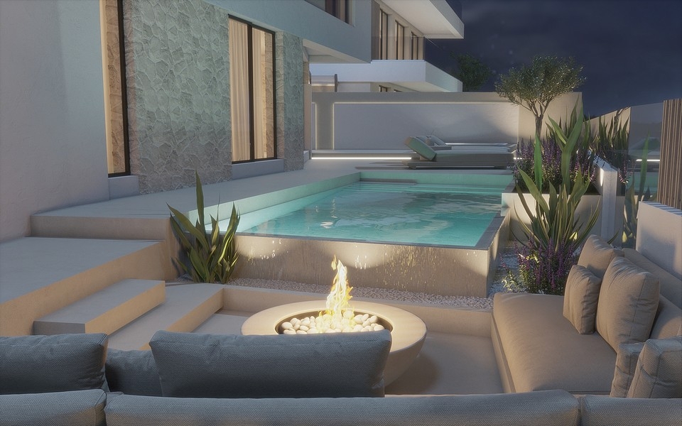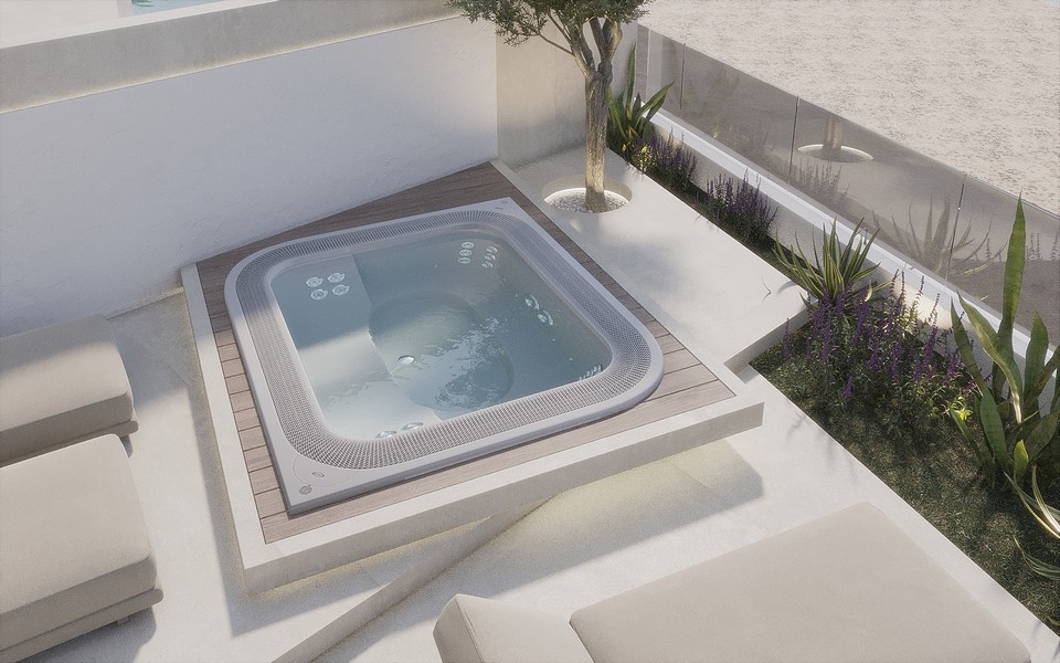 Heizung und Kühlung über Wärmepumpe, elektr. Fußbodenheizung im Badezimmer, italienische Keramikfliesen, Sicherheitssystem mit Videoüberwachung, Whirlpool, Swimmingpool, Barbecue Grill, Parkplatz