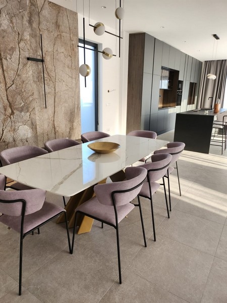 Im Außenbereich der Villa befinden sich ein ca. 60 m² großer Infinity-Swimmingpool mit geräumiger Sonnenterrasse sowie fünf Stellplätze. Die Villa wird inklusive der hochwertigen Möblierung zum Verkauf angeboten.