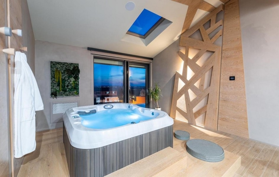 Klimatisierung, Sauna, Wellnessbereich mit Whirlpool, Fitnessbereich, Swimmingpool