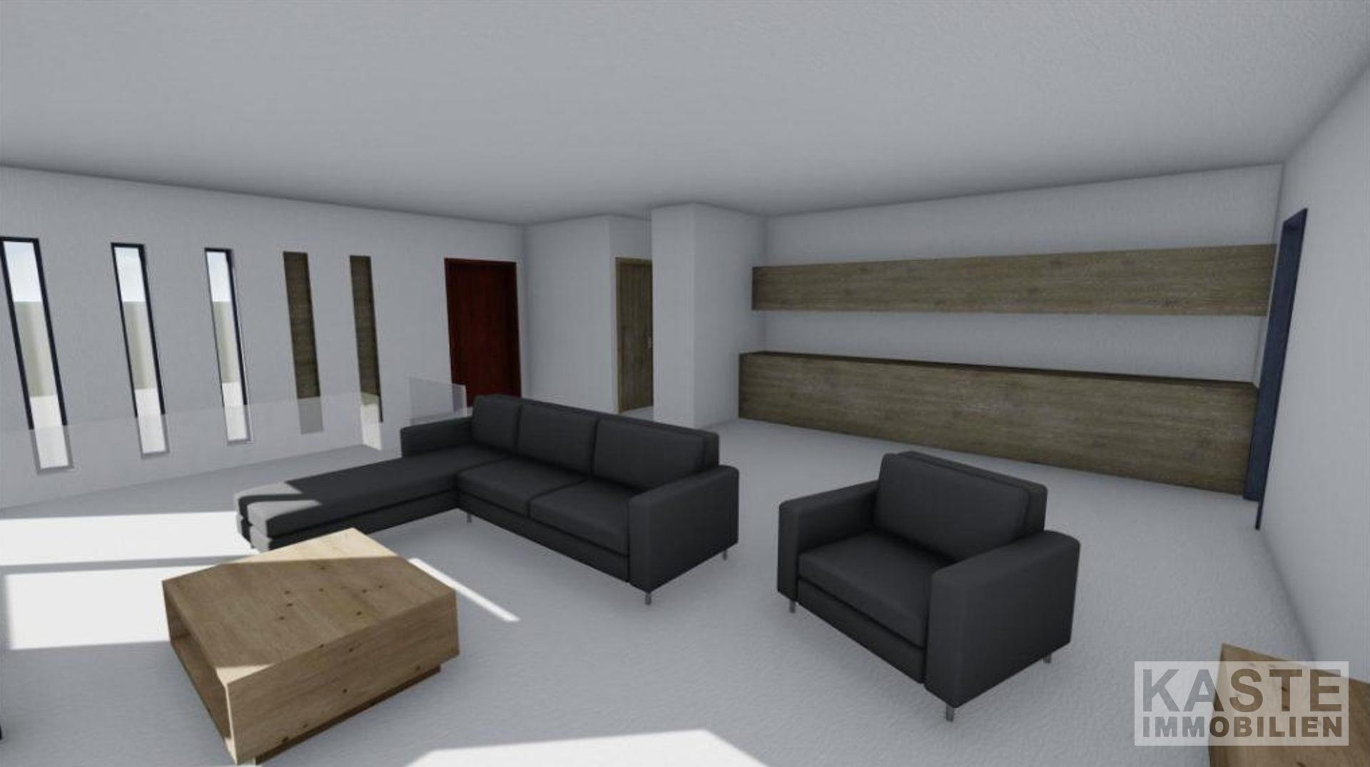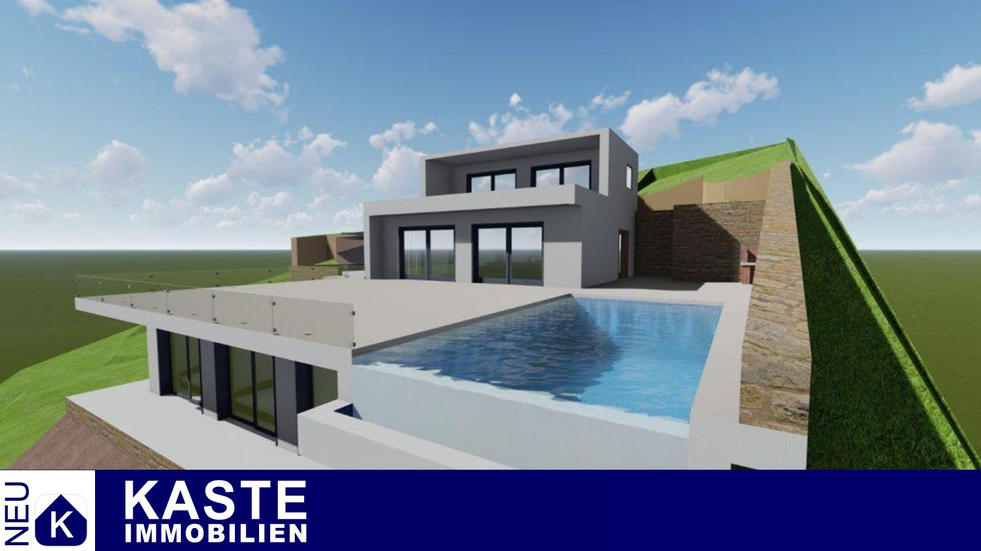 Obergeschoss (70 m²): Der Eingang vom Parkplatz führt in eine geräumige, offene Küche mit Ess- und Wohnbereich sowie einem Gäste-WC. Große Balkonschiebetüren öffnen sich zur weitläufigen Terrasse, zum 30 m² großen Swimmingpool und zum Grillplatz. Zwei Treppen, eine innen und eine außen, führen ins: