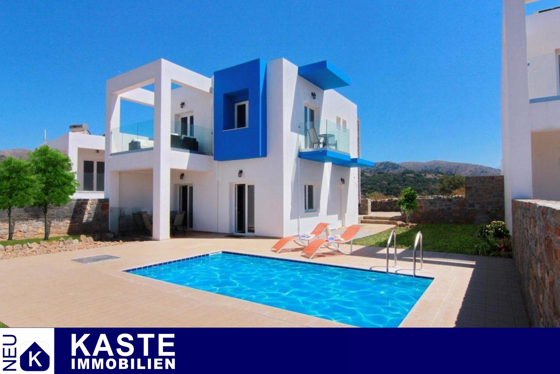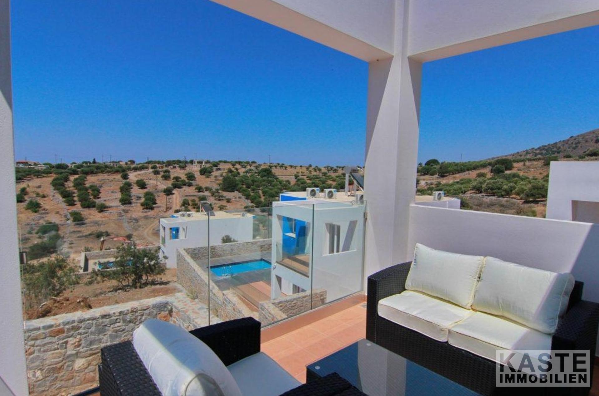 Diese neu gebaute, moderne Villa ist Teil eines Villenkomplexes, der sich im Dorf Kounali, nahe der Nordküste Kretas, im östlichen Teil der Insel (Präfektur Lasithi) befindet.