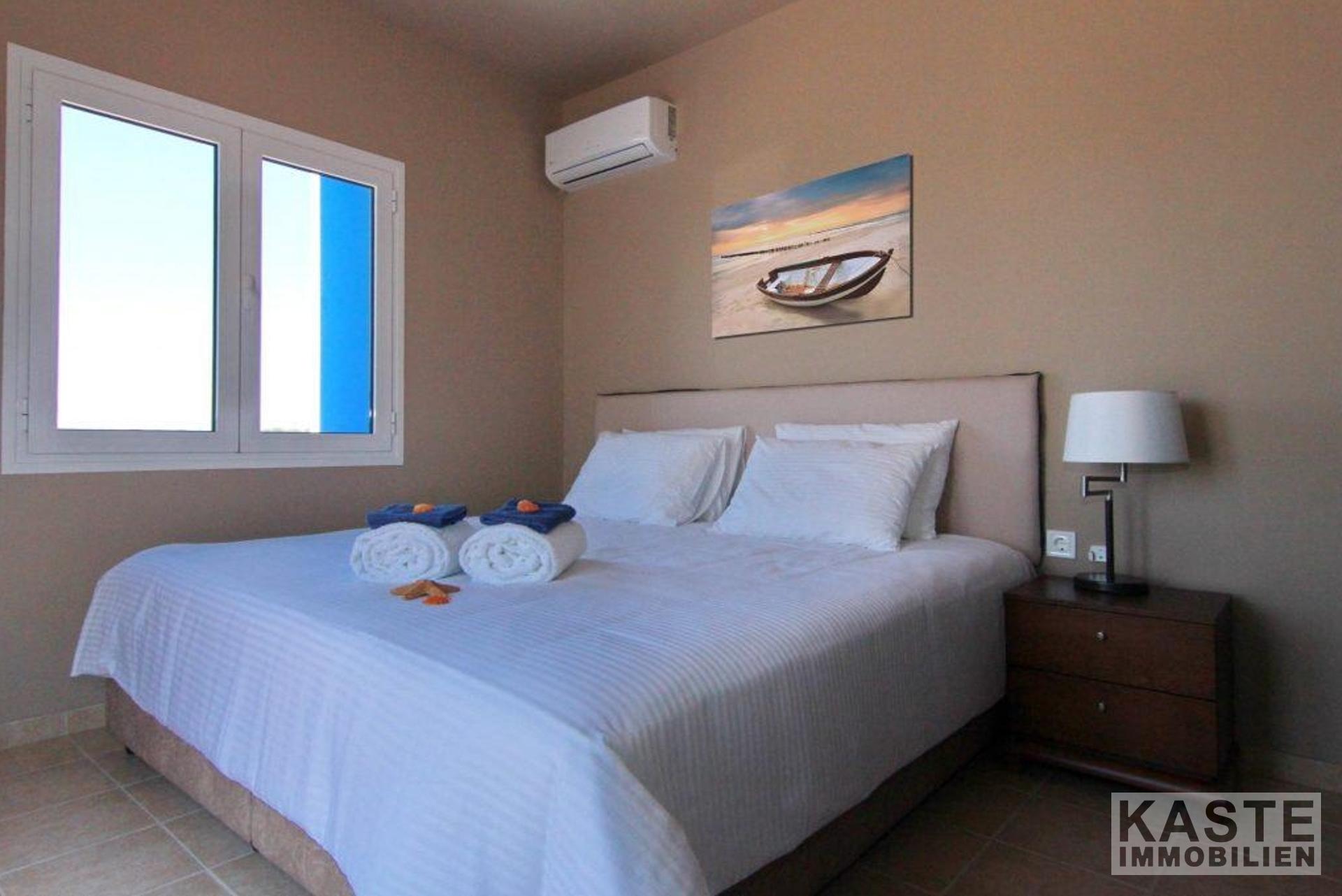 Diese Villa ist 130 m2 groß und steht auf einem privaten Grundstück von 300 m2. Im Erdgeschoss befinden sich eine voll ausgestattete Designer-Küche und ein geräumiges Ess-/Wohnzimmer. Im ersten Stock befinden sich ein Hauptschlafzimmer en-suite mit Zugang zu einem geräumigen Balkon und 2 weitere Doppelschlafzimmer en-suite, jeweils mit Zugang zu einem kleinen Balkon. Alle Zimmer und Balkone in der ersten Etage bieten einen Blick auf das Meer und die umliegenden Berge. Energieeffiziente Klimageräte sowohl zum Kühlen als auch zum Heizen sind im ganzen Haus installiert.