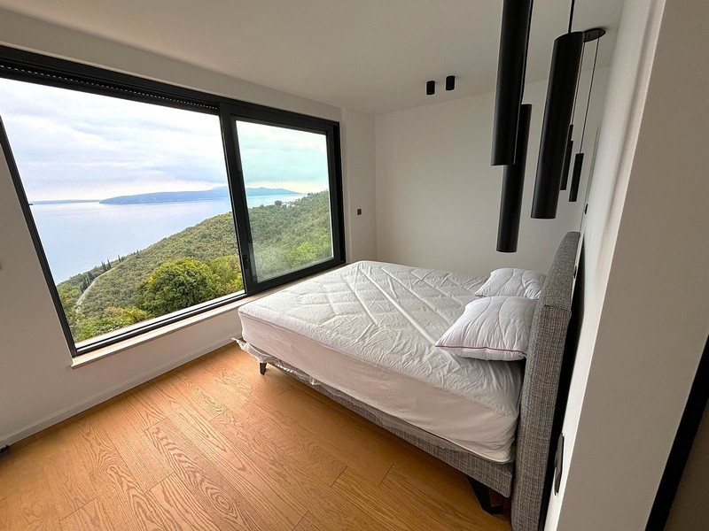 Eine attraktive, neu errichtete Villa mit schönem Pool nahe Lovran, nur 400 Meter (Luftlinie) vom Meer entfernt – ideal für alle, die Exklusivität, Komfort und einen weiten Blick auf die Kvarner Bucht schätzen. Über die Straße erreicht man das Meer in ca. 900 Metern.