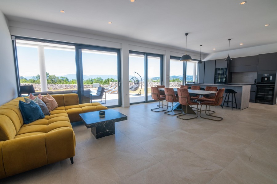 Zum Verkauf steht diese moderne Villa mit Swimmingpool und Meerblick, gelegen in einer attraktiven Lage der Region Kraljevica bei Crikvenica in der Kvarner Bucht.