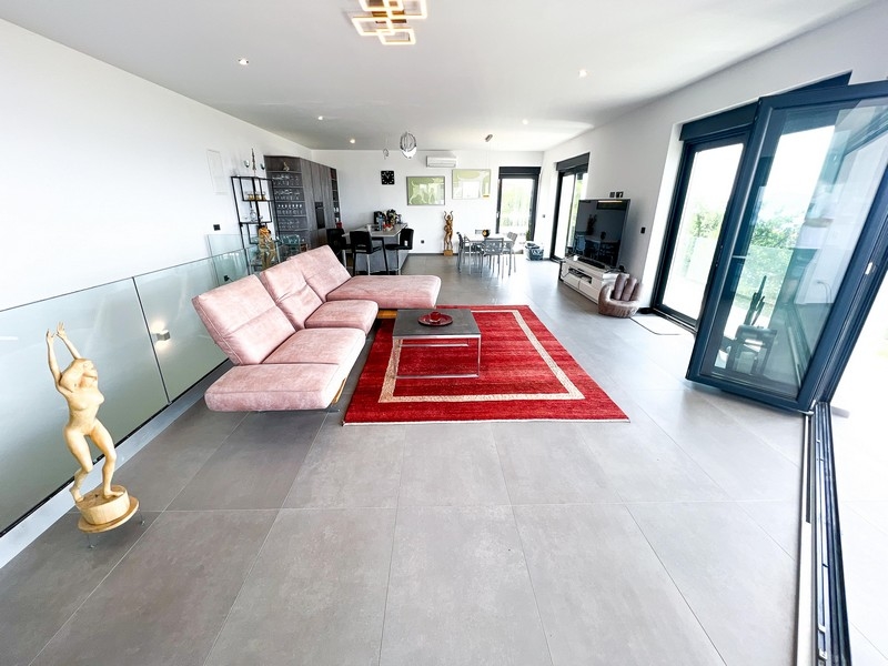 Besonders von der oberen Etage besteht ein wunderschöner Blick auf die Umgebung und das Meer. Die Villa ist hochwertig ausgestattet und modern eingerichtet.