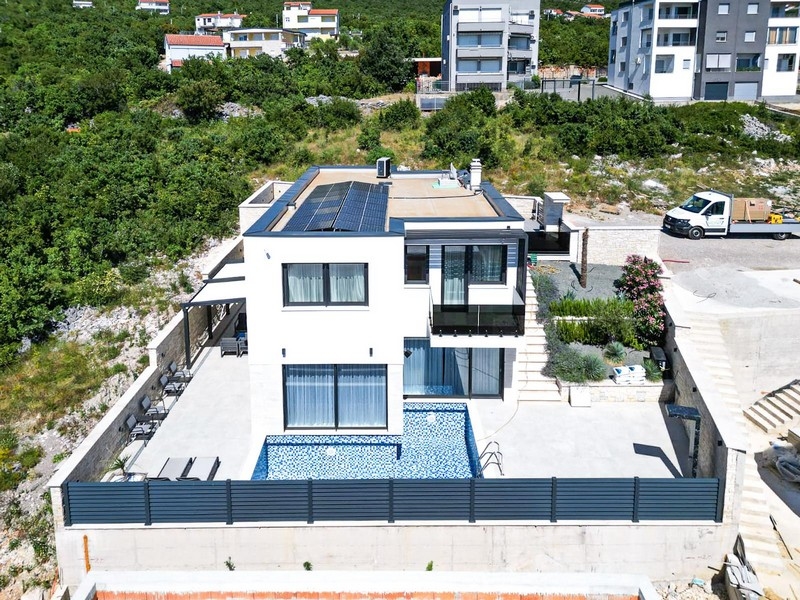 Bei diesem Angebot handelt es sich um eine stilvolle Neubau-Villa mit hochwertiger Ausstattung und privatem Pool in Jadranovo, nahe Crikvenica in der Kvarner Bucht.
