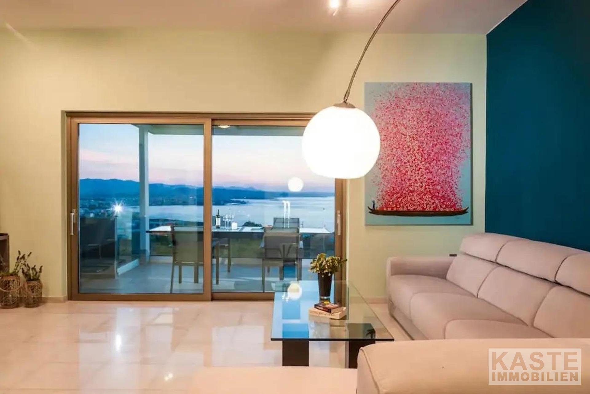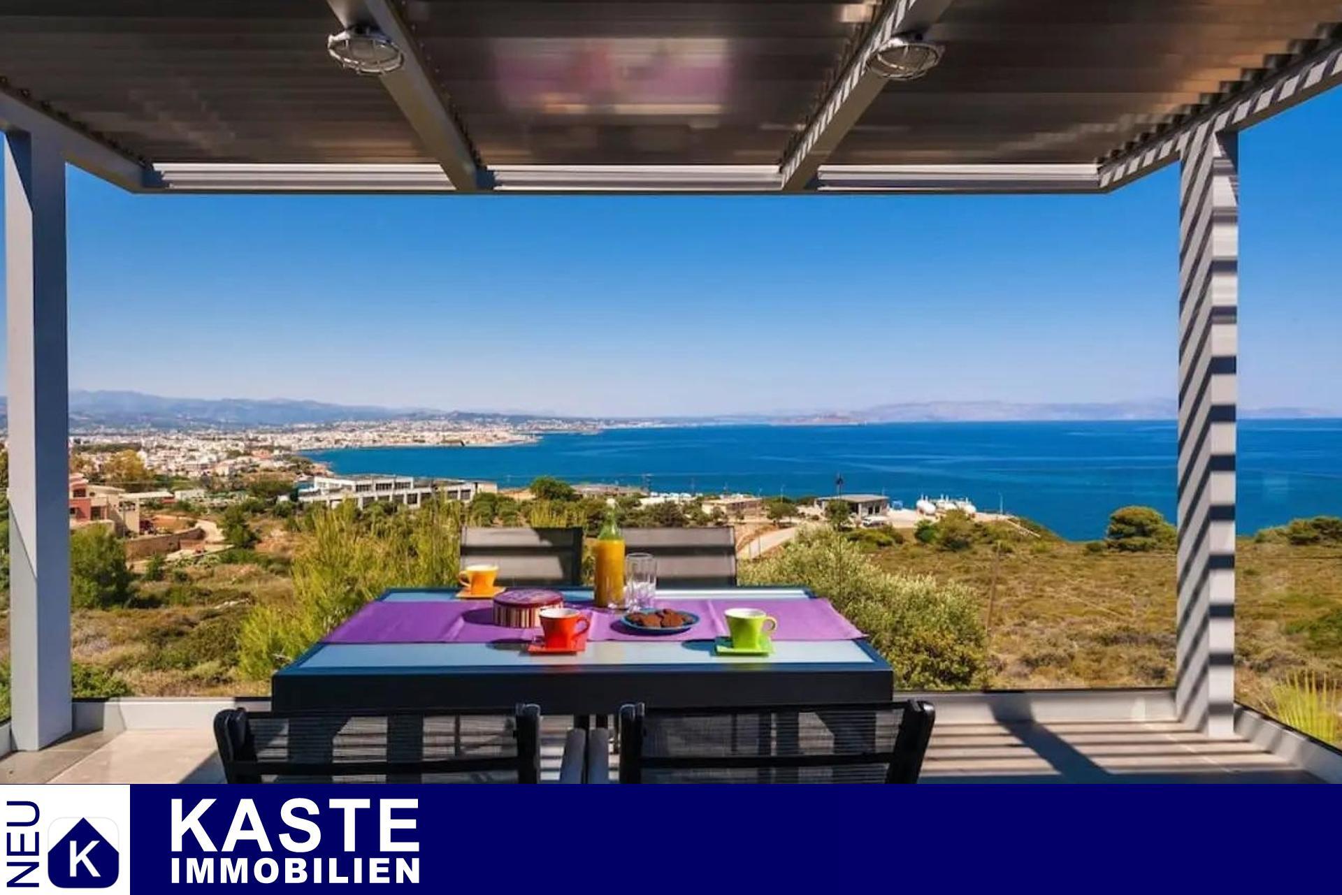 Diese exklusive Villa in Akrotiri, Chania auf Kreta überzeugt durch ihre moderne Architektur, großzügige Raumgestaltung und eine spektakuläre Aussicht auf das Meer, die Bucht von Chania sowie atemberaubende Sonnenuntergänge. Mit einer Wohnfläche von ca. 250 m² auf zwei Ebenen bietet das Anwesen ausreichend Platz für Komfort, Privatsphäre und stilvolles Wohnen.