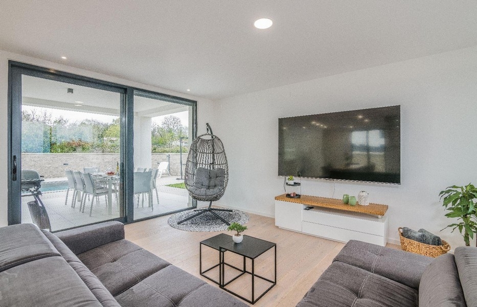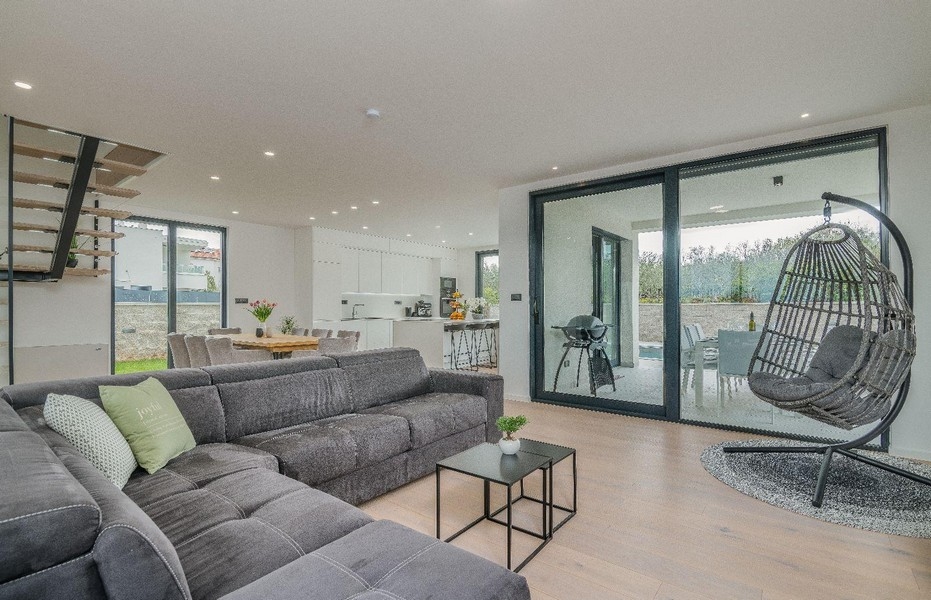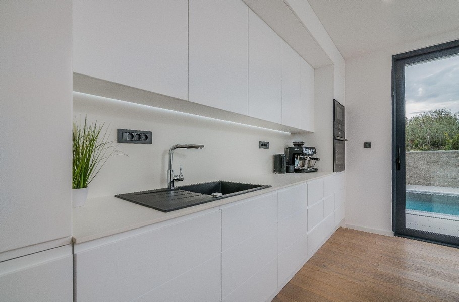 Hochwertige Materialien, erstklassige Keramik, moderne Sanitärelemente, eine Kombination aus PVC- und Aluminiumfenstern mit Dreifachverglasung, Klimaanlage, Fußbodenheizung mit Wärmepumpe und eine intelligente Gartenbewässerung sind Teil der Ausstattung. Das Haus wird komplett mit modernen Möbeln und hochwertigen Geräten verkauft. Die Lage ist ruhig und angenehm, nahe dem Zentrum (ca. 800 m) von Malinska, schönen Stränden (ca. 900 m) und allen wichtigen Einrichtungen.