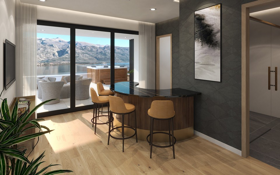 Es besteht ein wunderschöner Blick auf das Meer, die Küstenlinie und das imposante Velebit-Gebirge mit dem Paklenica Nationalpark. Das idyllische Ortszentrum erreicht man bequem zu Fuß. Zum Meeresufer sind es nur ein paar Schritte (ca. 70 Meter).