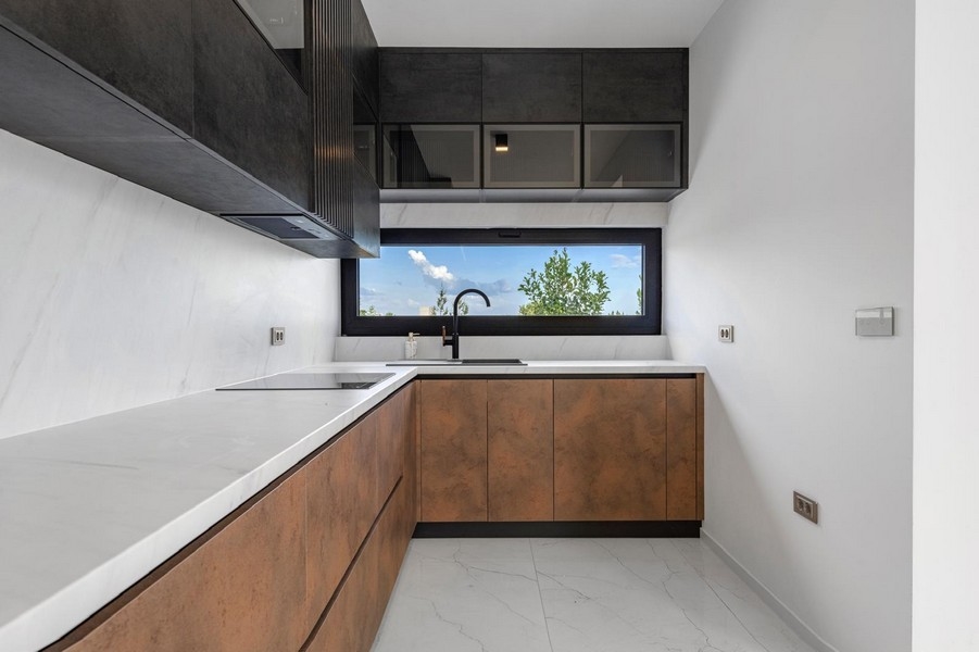 Die 2024 errichtete Villa gehört zu einem Ensemble von vier ähnlichen Einheiten und verfügt über einen Garten von ca. 150 m² sowie eine Gesamtfläche von ca. 182 m² (Wohnfläche ca. 150 m²). Die Raumaufteilung auf zwei Etagen gestaltet sich wie folgt: