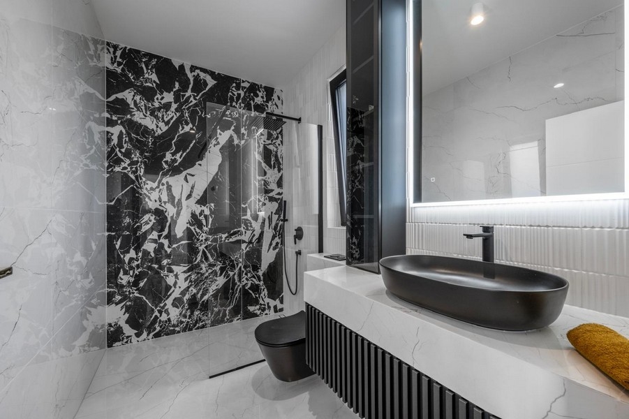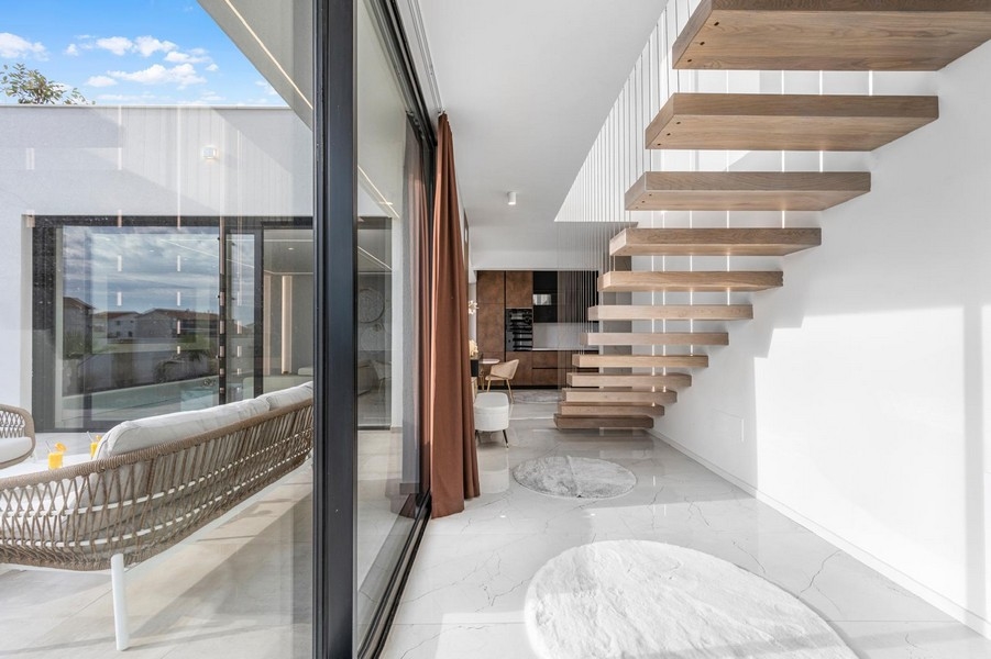 Die Villa wird vollständig möbliert und hochwertig ausgestattet verkauft. Der Außenbereich umfasst einen Pool mit Sonnendeck, eine Grillzone sowie zwei Stellplätze.