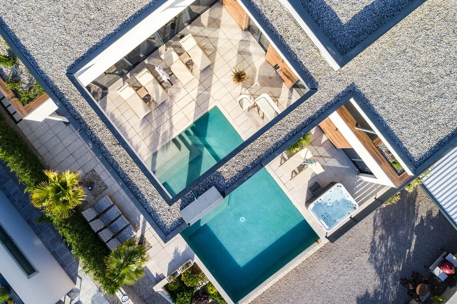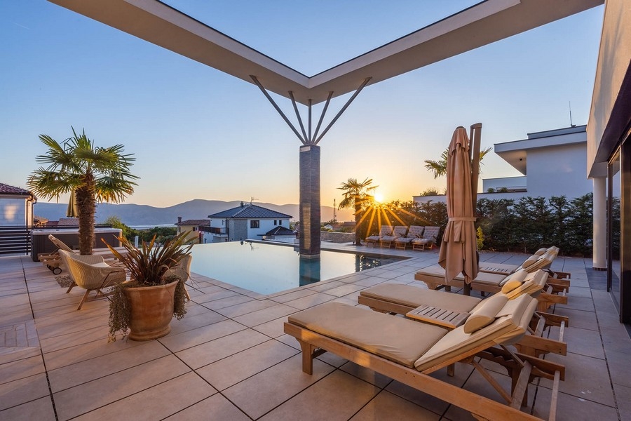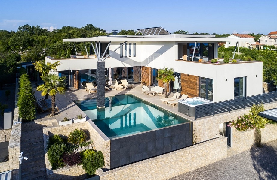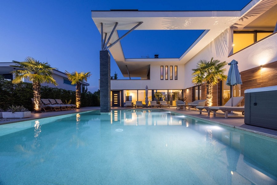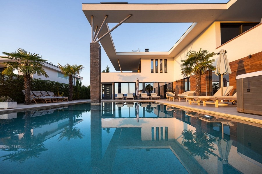 Ausgestattet ist diese Villa mit Panorama Glaswänden, dreifach verglasten Fenster, hochwertigen Sanitäranlagen, Fußbodenheizung, Klimatisierung Sicherheitstüren, Alarmanlage und Videoüberwachung.