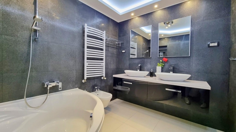Auf der Dachterrasse befindet sich ein kleiner Whirlpool. Dieses Objekt ist voll möbliert und hochwertig ausgestattet. Alle Räume sind mit Klimaanlagen zum Kühlen und Heizen der Räume ausgestattet.