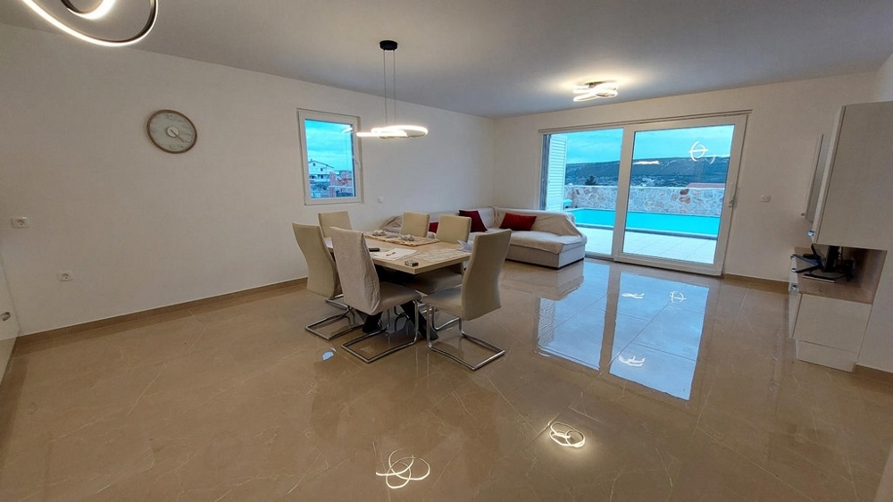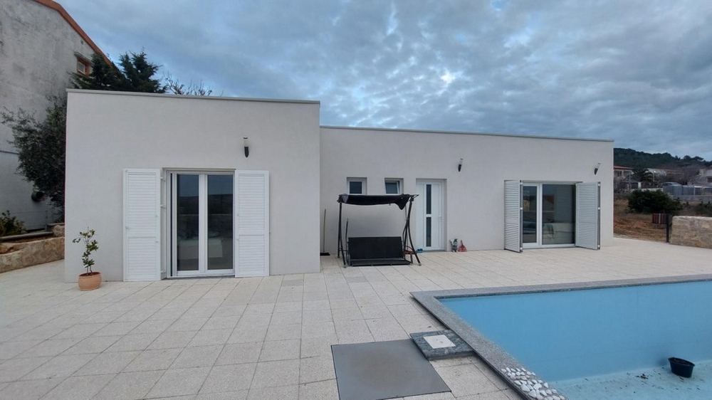 Bei diesem Angebot handelt es sich um einen modernen und neuen Bungalow mit Swimmingpool und Meerblick in Stara Novalja auf der Insel Pag mit Fähr- und Brückenverbindung zum Festland.