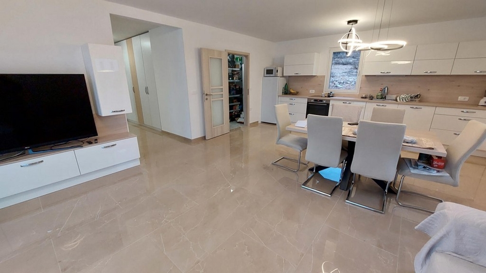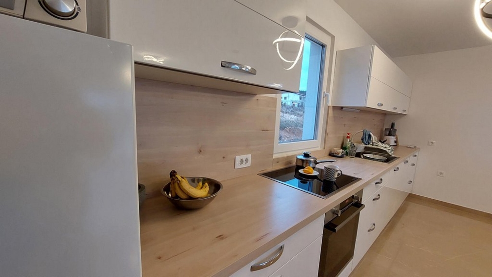 Das Haus wurde 2024 auf einem ca. 653 m² großen Grundstück fertiggestellt und es bietet eine Wohnfläche von ca. 121 m² mit drei Schlafzimmern, zwei Badezimmern, Wohnzimmer mit offener Küche und Essbereich sowie einer Waschküche / Heizraum.