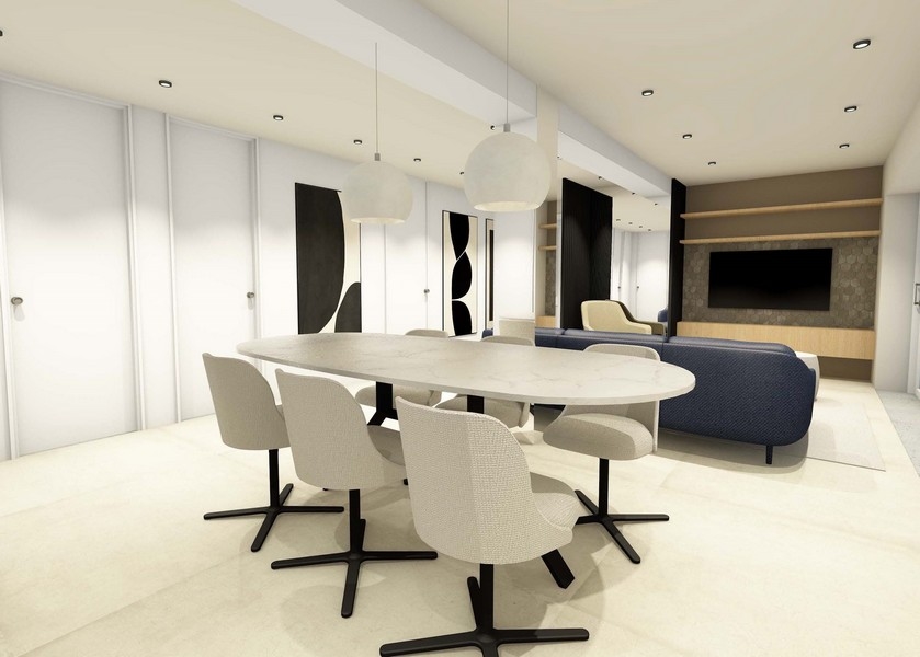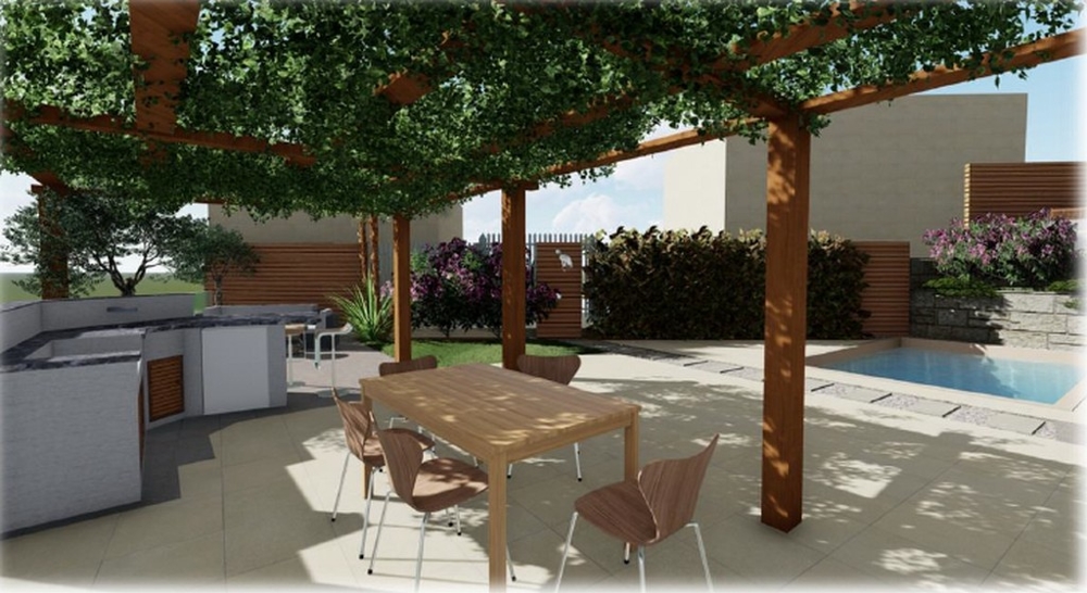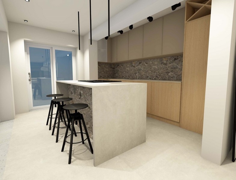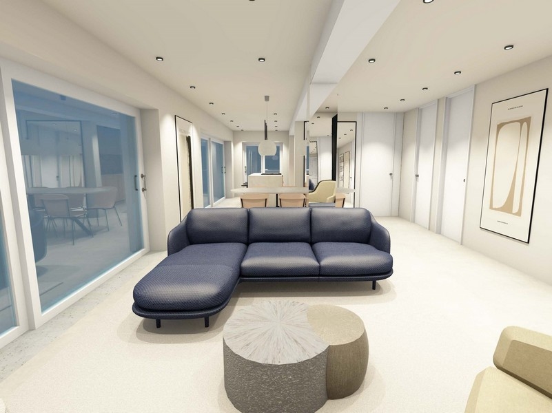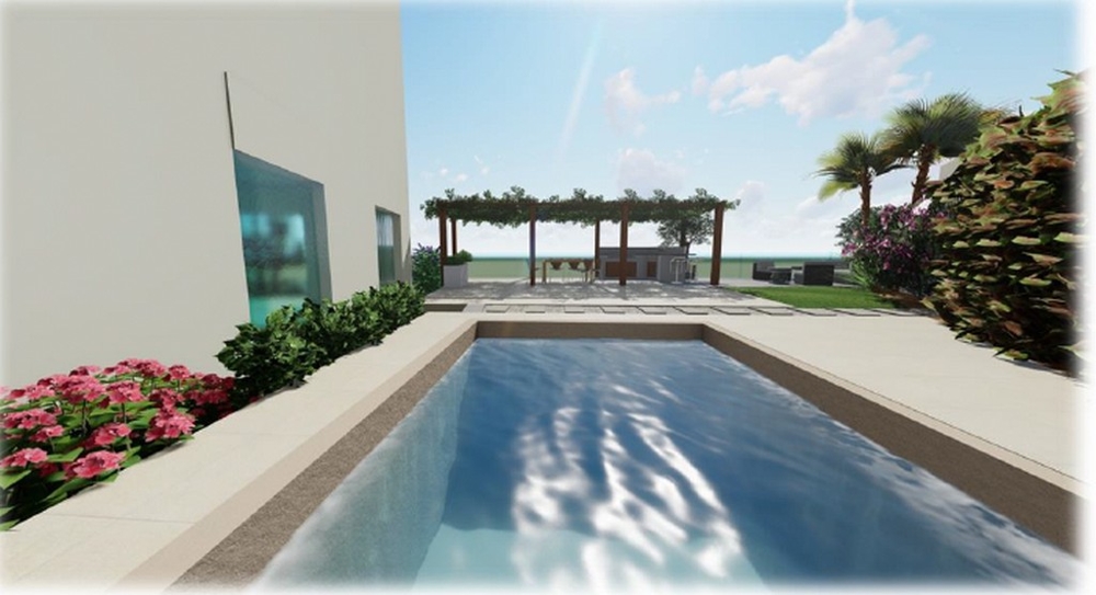 Die komplett neu sanierte Erdgeschosswohnung hat eine Wohnfläche (netto) von 82 m², die in eine helle Küche mit offenem Ess- und Wohnbereich, zwei Schlafräume und zwei Bäder aufgeteilt ist. Vom Wohn- und Essbereich gelangt man auf die Terrasse mit Pool und in den neu angelegten Garten.
