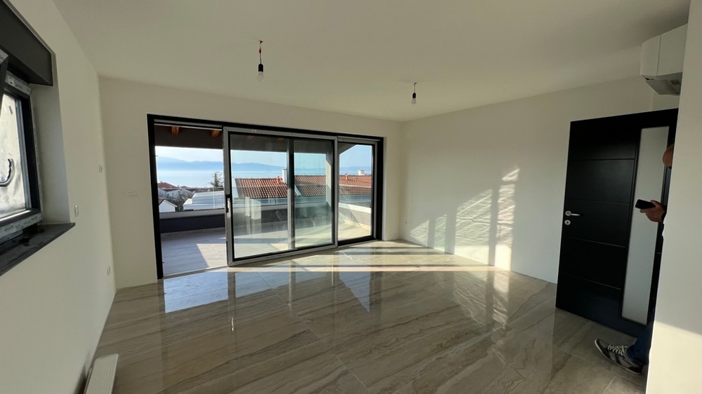 Bei diesem Objekt handelt es sich um eine moderne Wohnung mit großer Terrasse und schönem Meerblick in Malinska, Insel Krk.