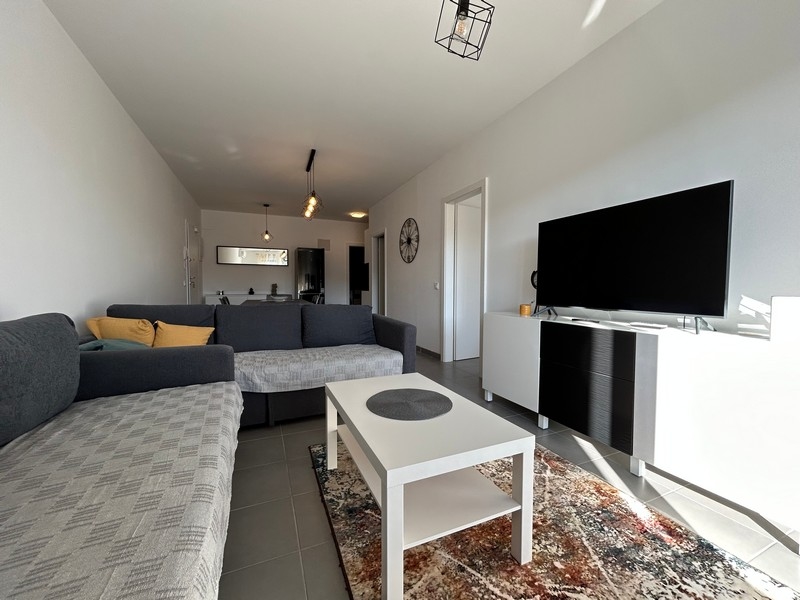 Die Wohnfläche von ca. 70 m² verteilt sich auf zwei Schlafzimmer, ein Badezimmer, Wohnzimmer mit Essbereich, Küche und eine Terrasse.