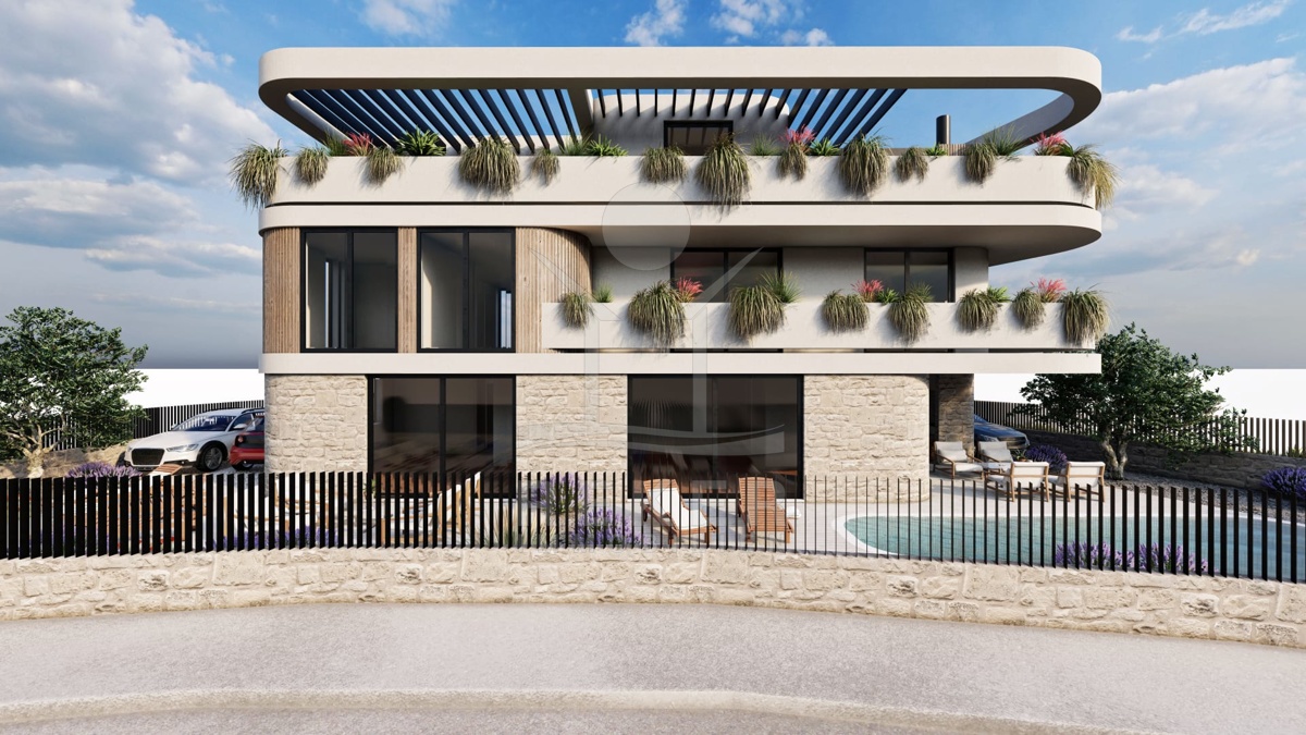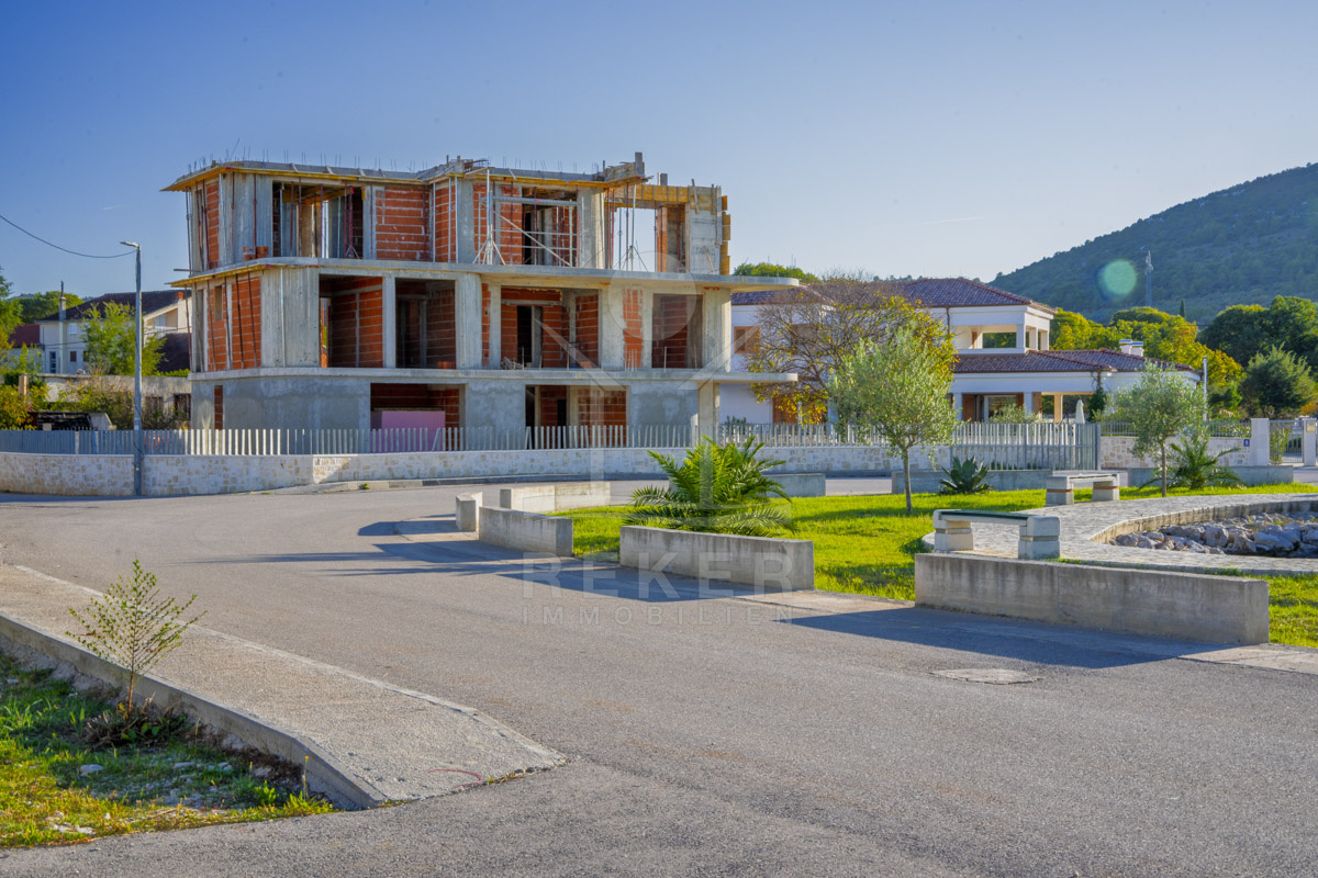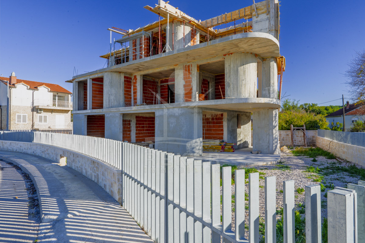 Tauchen Sie ein in die Welt des modernen Designs und erleben Sie höchste Bauqualität in dieser einzigartigen Doppelhaushälfte in Bilice! Der Neubau in erster Reihe bietet einen unverbaubaren Blick auf das glitzernde Meer und verspricht pure Entspannung. Mit einer hochwertigen Bauweise und geschmackvollen Details verbindet dieses Traumhaus Luxus mit Komfort.