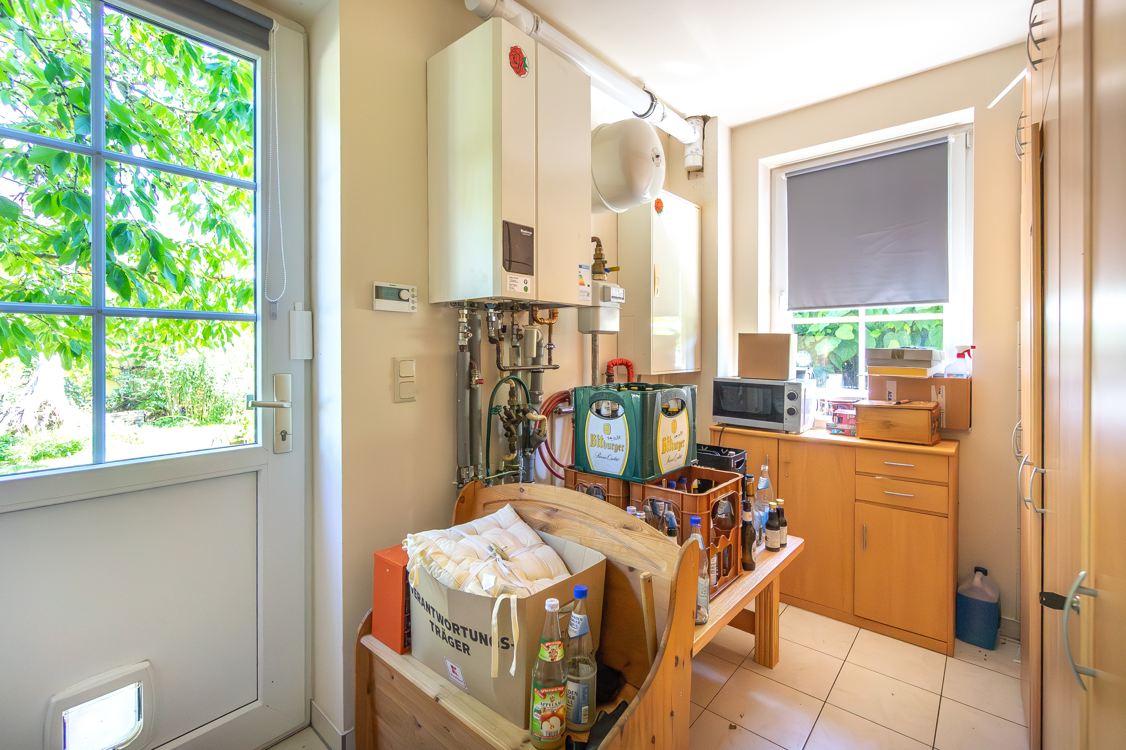 Haustechnik: • Gaszentralheizung im HWR (Baujahr 2001) • Heizkörper in allen Wohnräumen & Bädern • Wasser/Abwasser städtisch, Strom vorhanden • Glasfaser & Telefonanschluss • Sicherheitsriegel an EG-Fenstern • Brunnen mit Pumpe zur Gartenbewässerung