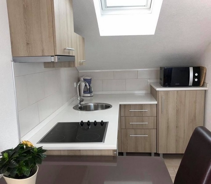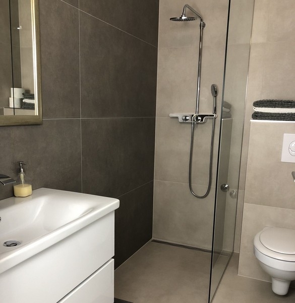 Im ersten Stock finden sich drei Appartements. Eine 1-Zimmer-Wohnung mit ca. 55 m², eine weitere Wohnung mit einem Schlafzimmer plus Wohnzimmer ebenfalls mit ca. 55 m² und ein Studio-Apartment von ca. 30 m².