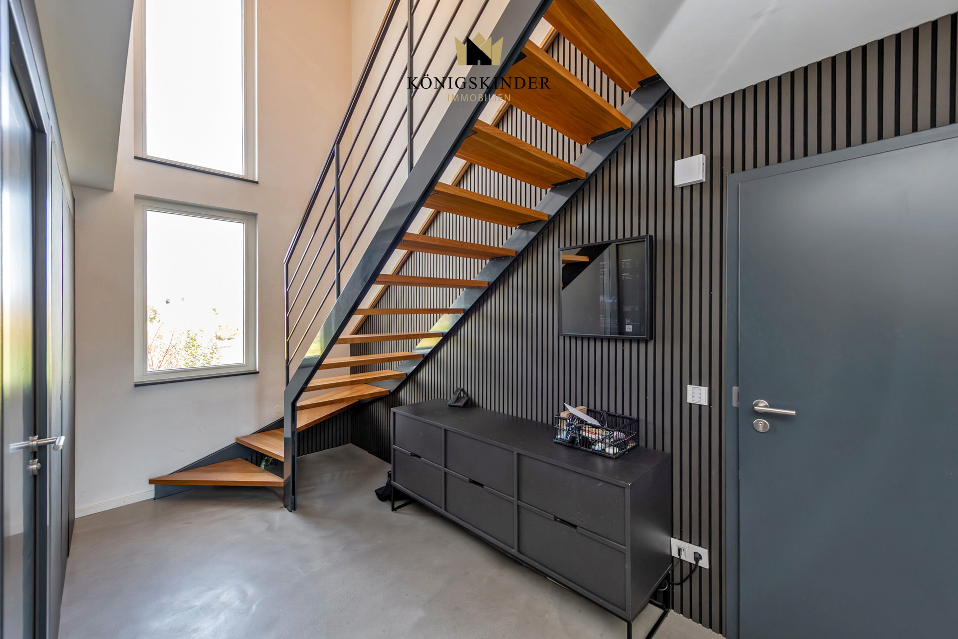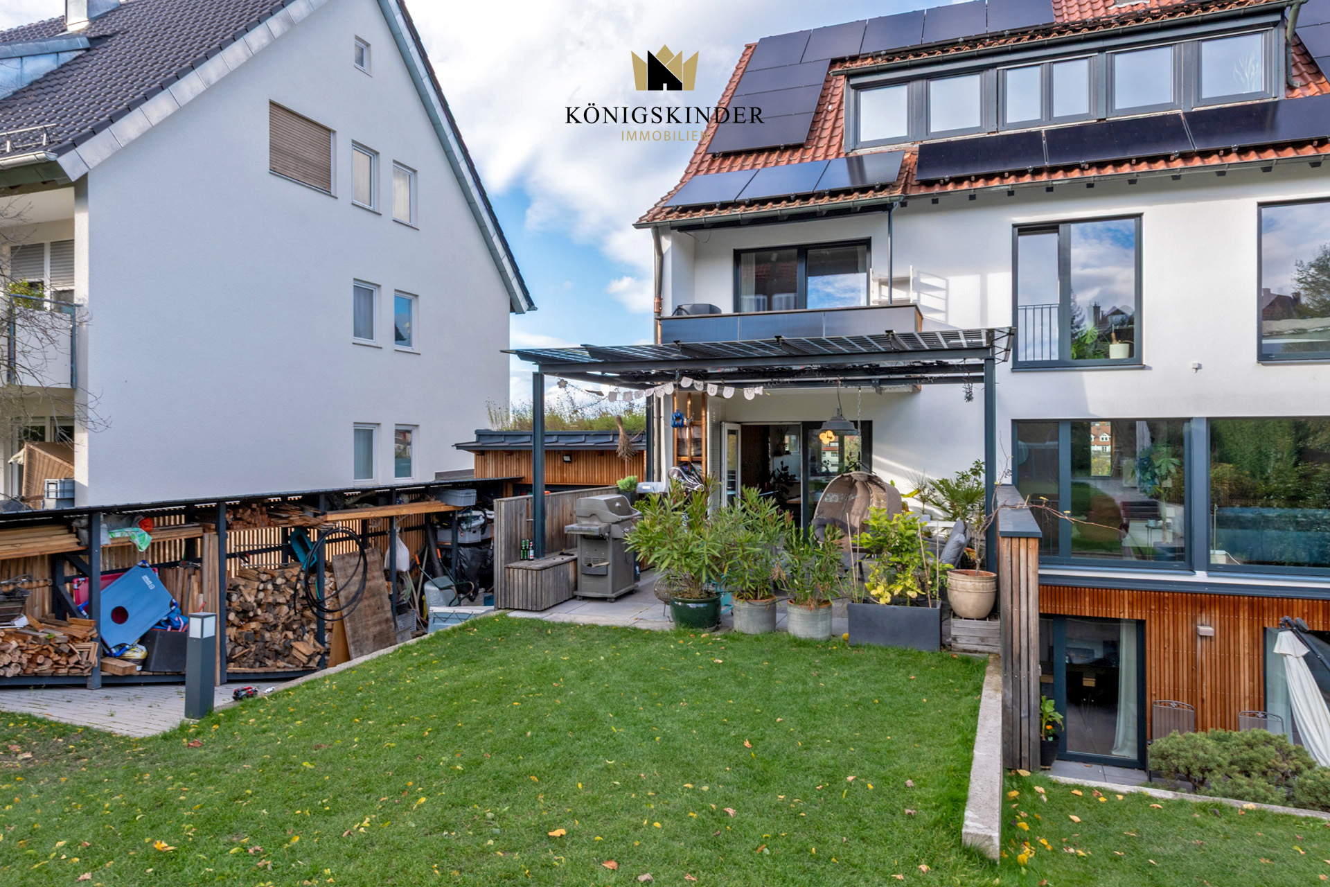 Hochwertige Materialien, smarte Haustechnik und eine Fußbodenheizung sorgen für Komfort auf höchstem Niveau. Draußen wartet die Gartenoase mit Südwestterrasse, Pergola und unverbaubarem Blick – ein Rückzugsort, der Entspannung und Naturverbundenheit perfekt vereint. Die Garage, zwei Stellplätze und eine E-Auto-Wallbox runden das Angebot ab.