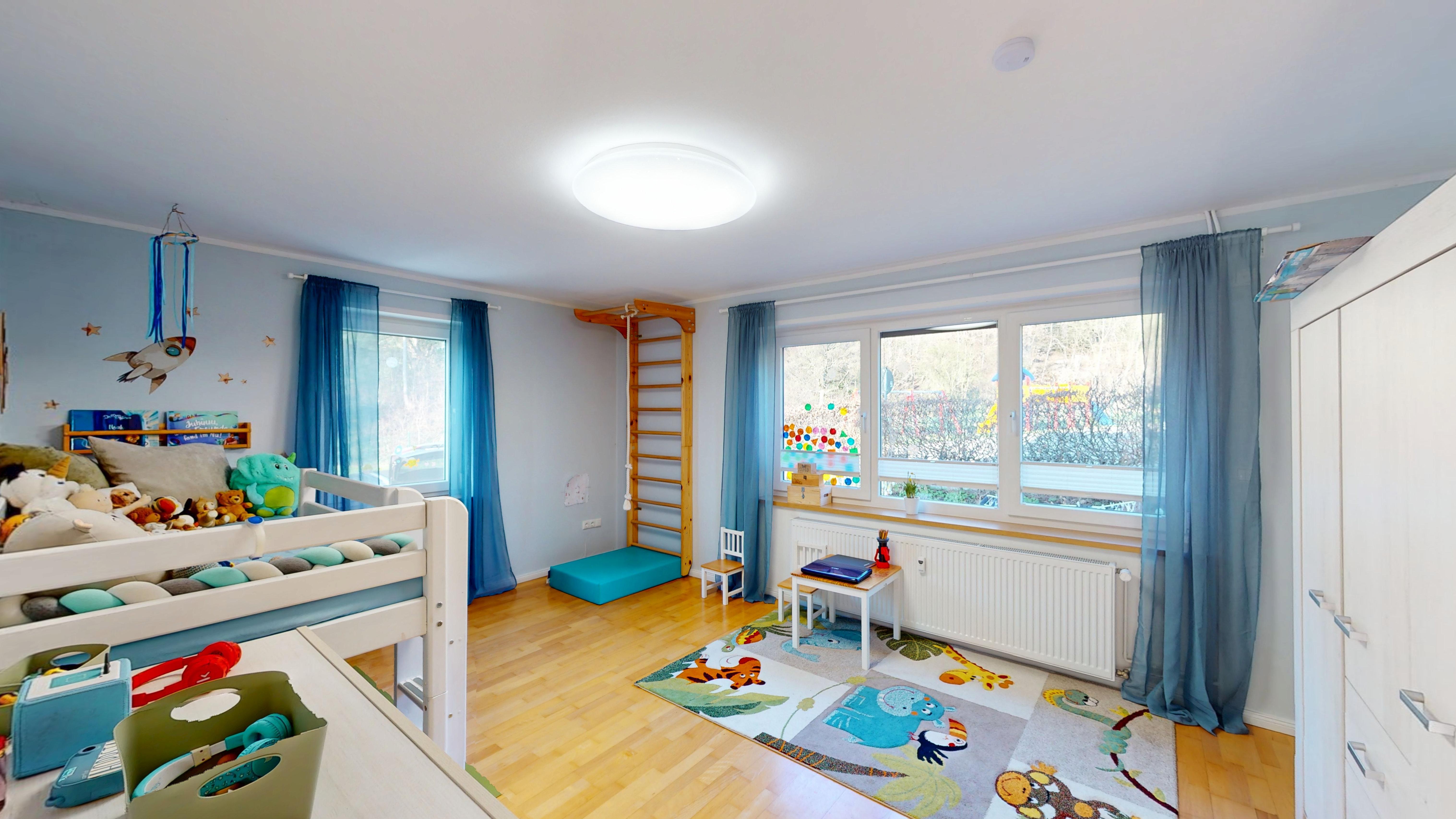 Direkt gegenüber befindet sich ein Spielplatz, während sich hinter dem Grundstück ein naturnaher Park mit Zugang zu weitläufigen Waldflächen anschließt – ideal für Spaziergänge, Freizeit und Erholung.