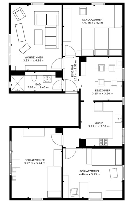 • 4 optimal geschnittene Zimmer ohne Dachschrägen