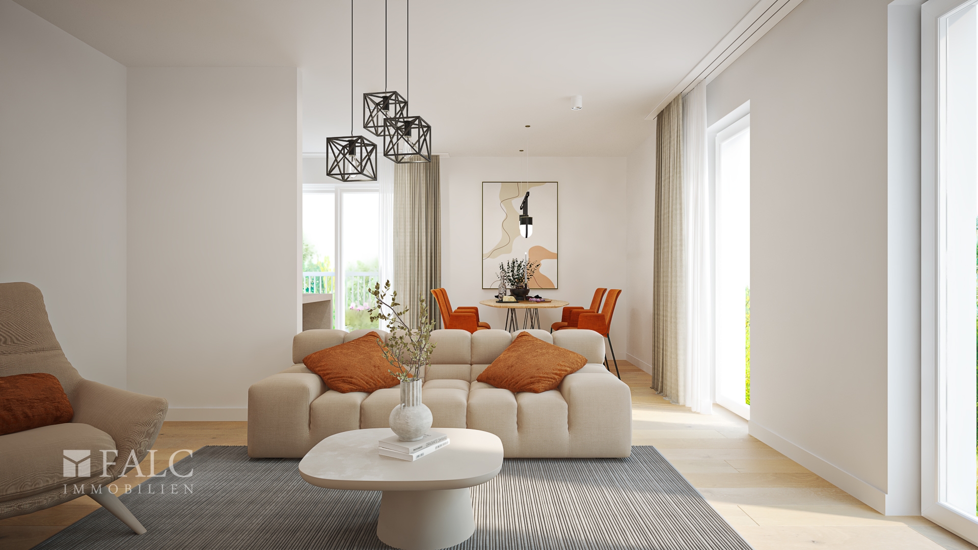 HINWEIS: Die gezeigten Darstellungen sind unverbindliche computergenerierte Visualisierungen eines noch nicht vollständig fertiggestellten Bauvorhabens. Sie dienen ausschließlich der Illustration des geplanten Endzustands. Der tatsächliche Ausführungszustand kann insbesondere hinsichtlich Gestaltung, Materialien, Farbgebung, Ausstattung sowie baulicher Details vom dargestellten Konzept abweichen.