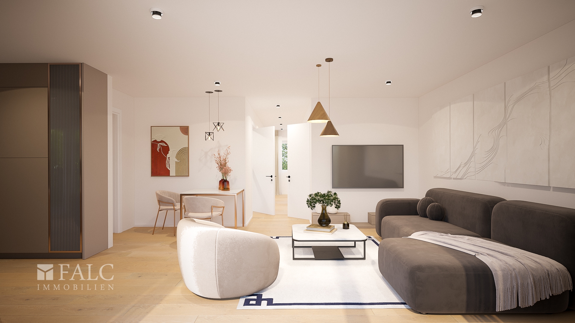HINWEIS: Die gezeigten Darstellungen sind unverbindliche computergenerierte Visualisierungen eines noch nicht vollständig fertiggestellten Bauvorhabens. Sie dienen ausschließlich der Illustration des geplanten Endzustands. Der tatsächliche Ausführungszustand kann insbesondere hinsichtlich Gestaltung, Materialien, Farbgebung, Ausstattung sowie baulicher Details vom dargestellten Konzept abweichen.