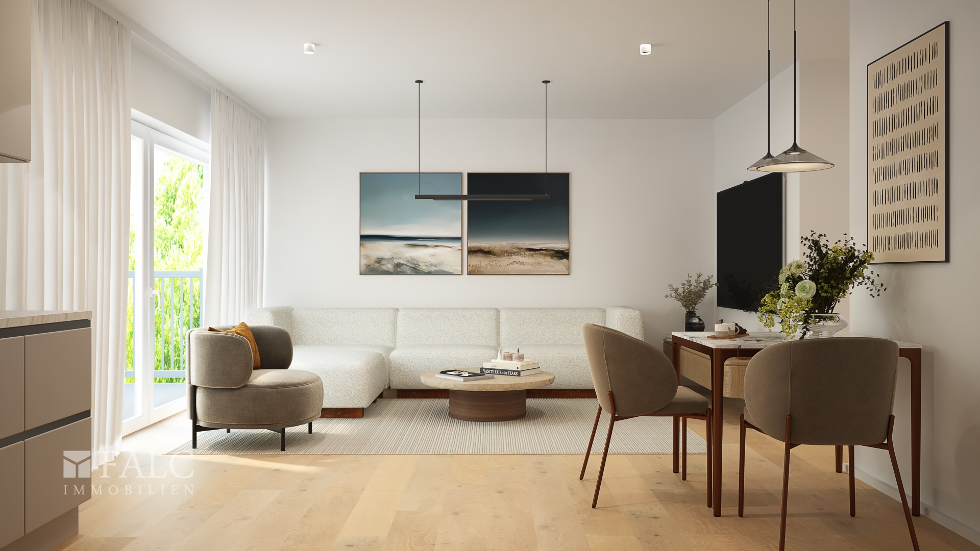 HINWEIS: Die gezeigten Darstellungen sind unverbindliche computergenerierte Visualisierungen eines noch nicht vollständig fertiggestellten Bauvorhabens. Sie dienen ausschließlich der Illustration des geplanten Endzustands. Der tatsächliche Ausführungszustand kann insbesondere hinsichtlich Gestaltung, Materialien, Farbgebung, Ausstattung sowie baulicher Details vom dargestellten Konzept abweichen.