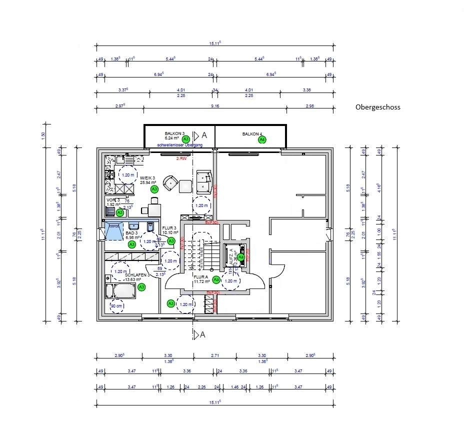 Wohnungsnummer: 3 Geschoss: Obergeschoss Zimmeranzahl: 2 Zimmer Anzahl Badezimmer: 1 Wohnfläche: 61,51 m² Balkonfläche: 6,24 m² Kellerraumfläche: 8,89 m² Stellplatz: vorhanden