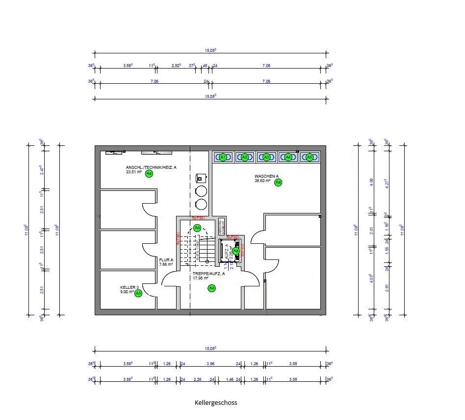 Zur Wohnung gehört ein eigener Kellerraum mit einer Fläche von 8,89 m², der praktischen Stauraum bietet. Ein Stellplatz ist ebenfalls vorhanden. Das Gebäude ist vollständig unterkellert und verfügt über einen Personenaufzug mit Erschließung aller Geschosse einschließlich des Kellergeschosses, was einen komfortablen Zugang zu allen Ebenen ermöglicht.