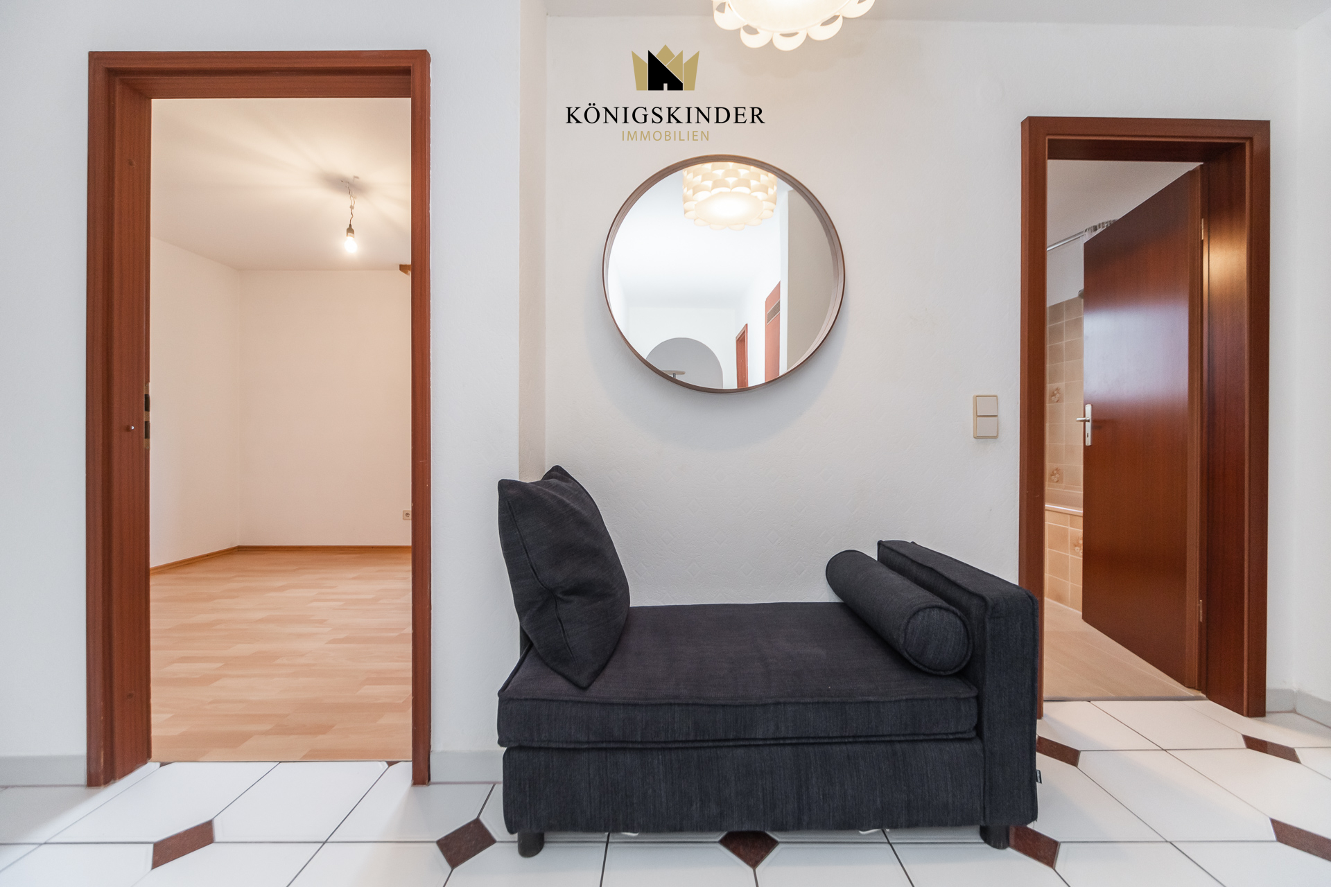 Die großzügigen Wohnräume bieten viel Platz für individuelle Wohnideen und ein angenehmes Raumgefühl. Das helle Wohnzimmer mit Zugang zum sonnigen Balkon lädt zum Entspannen ein und schafft einen harmonischen Übergang zwischen Innen- und Außenbereich.