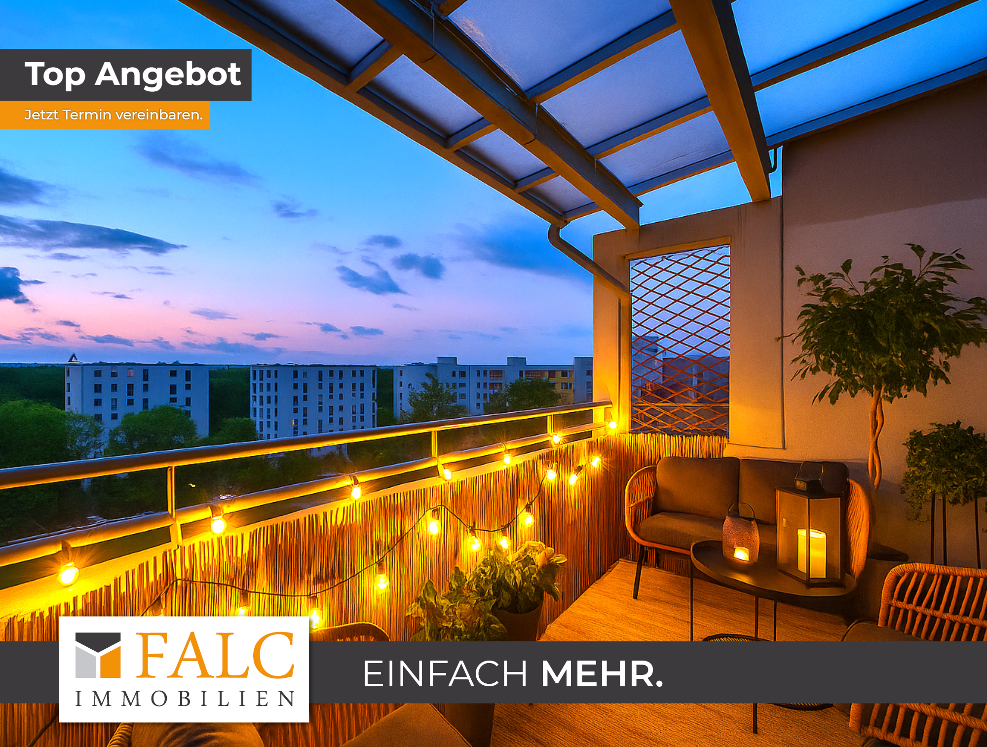 Wir bieten nicht nur eine kostenlose Hotline, sondern auch einen Service am Wochenende an. Besuchen Sie auch unsere Homepage www.falcimmo.de. Hier finden Sie weitere Immobilienangebote und können einen individuellen Suchauftrag generieren. Ferner finden Sie umfangreiche Informationen zum Thema Immobilie und Finanzierung.