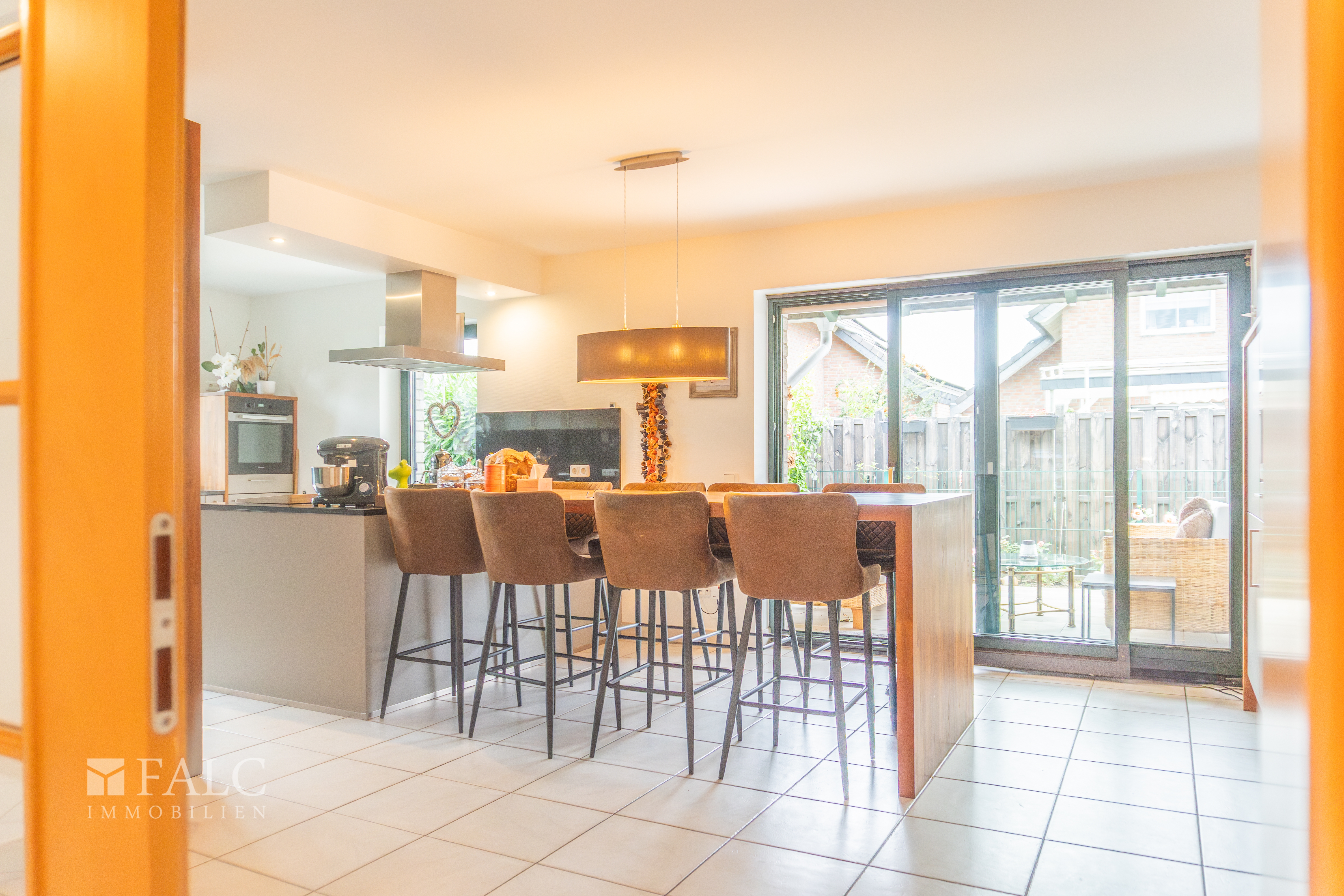 + Barrierefreie Einliegerwohnung mit eigenem Stellplatz und Hauseingang + Garage mit Zugang zum Haus + Helle Räume + Offene Küche (Küche kann auf Wunsch übernommen werden) + Separates Kaminzimmer + Wintergarten + Terrasse mit Außenkamin + Großer Garten mit 3 Terrassen + Ausgebauter Keller mit Bad, Ankleide und Sauna + Gartenhaus