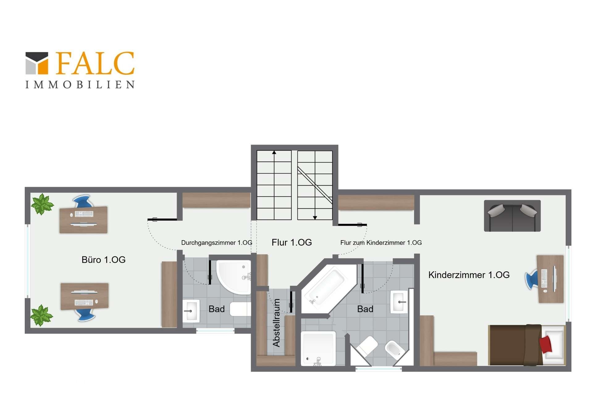 Zum Schutz der Privatsphäre zeigen wir auf den Objektfotos nicht die originale Einrichtung der aktuellen Bewohner. Die Fotos zeigen daher teilweise Beispieleinrichtungen die mit Hilfe von KI erzeugt wurden.